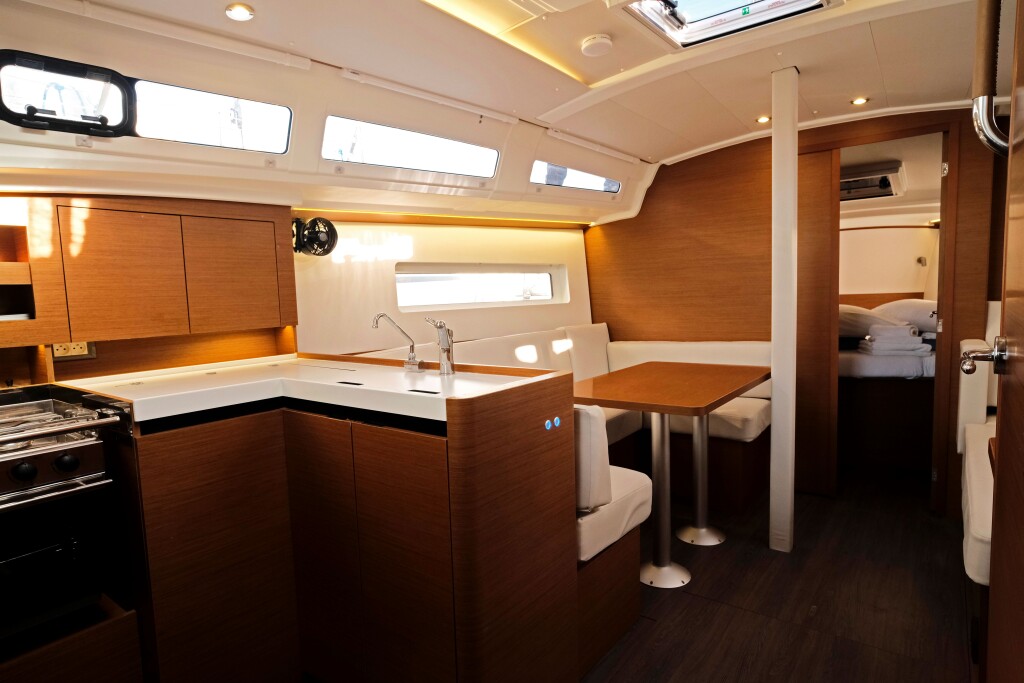 Segelyacht Sun Odyssey 380 Sea Kiss, Baujahr 2024, liegt im ACI Marina Split, Split & Umgebung, Kroatien vor Anker. Es verfügt über 3 Kabinen und bietet Platz für 8 + 2 Personen mit 2 Toiletten. Bettwäsche und Küchenausstattung sind im Preis inbegriffen.