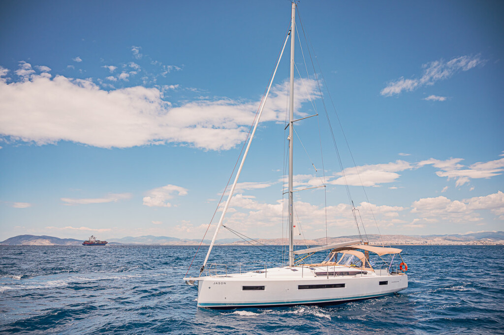 Segelyacht Sun Odyssey 490 Jason, Baujahr 2020, liegt im Athens, Alimos marina, Peloponnes, Griechenland vor Anker. Es verfügt über 5 + 1 Kabinen und bietet Platz für 10 + 2 Personen mit 3 + 1 Toiletten. Bettwäsche und Küchenausstattung sind im Preis inbegriffen.