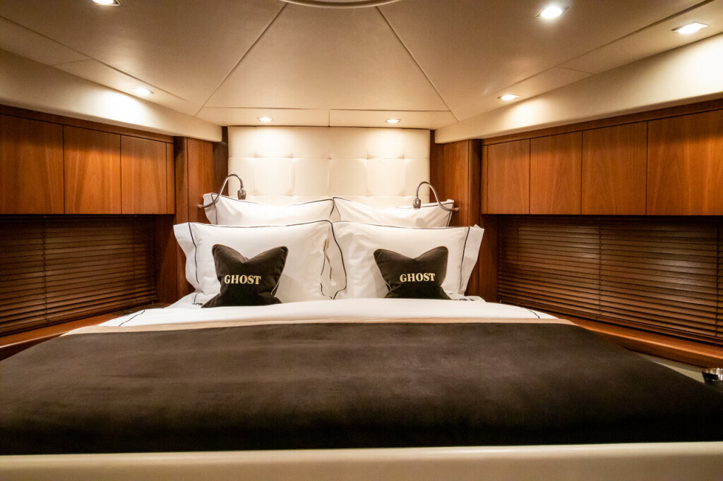 Motoryacht Sunseeker Predator 72 Ghost, Baujahr 2008, liegt im Marina Kastela, Split & Umgebung, Kroatien vor Anker. Es verfügt über 3 + 1 Kabinen und bietet Platz für 6 + 2 Personen mit 3 + 1 Toiletten. Bettwäsche und Küchenausstattung sind im Preis inbegriffen.