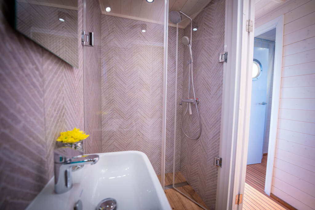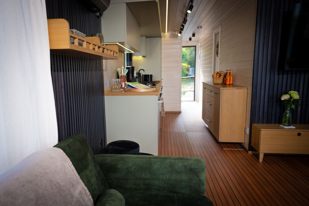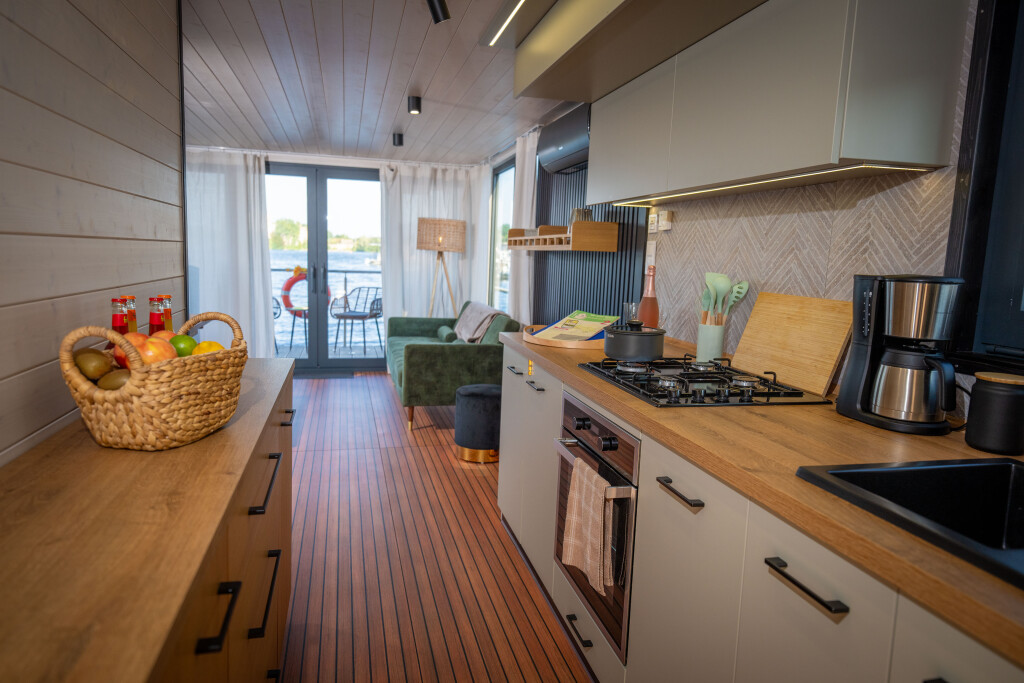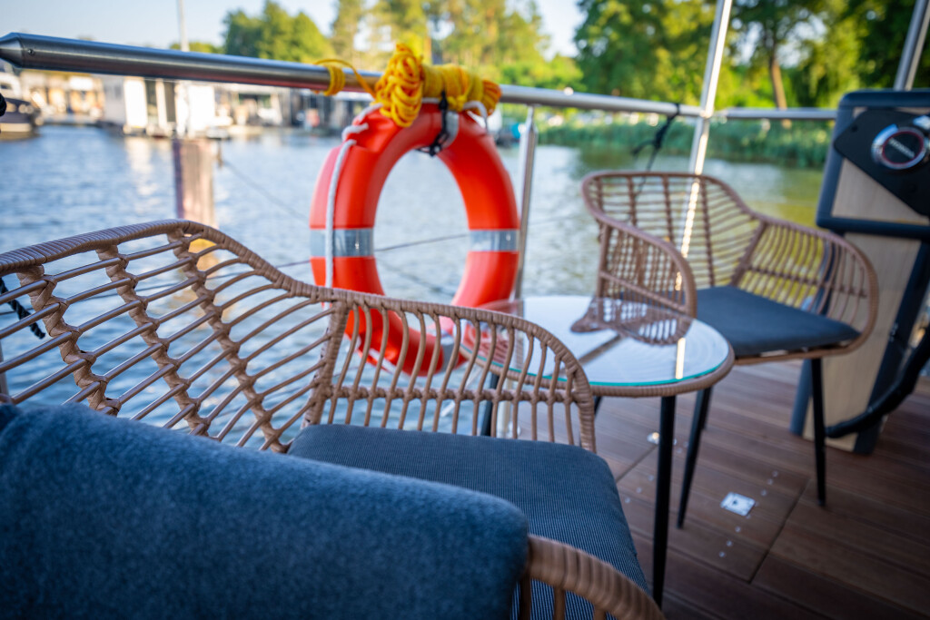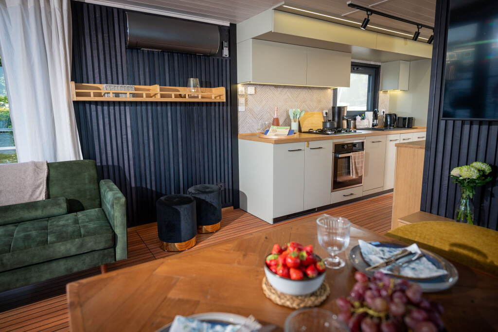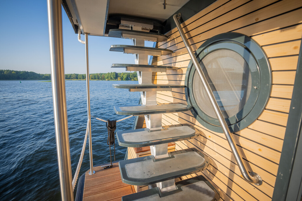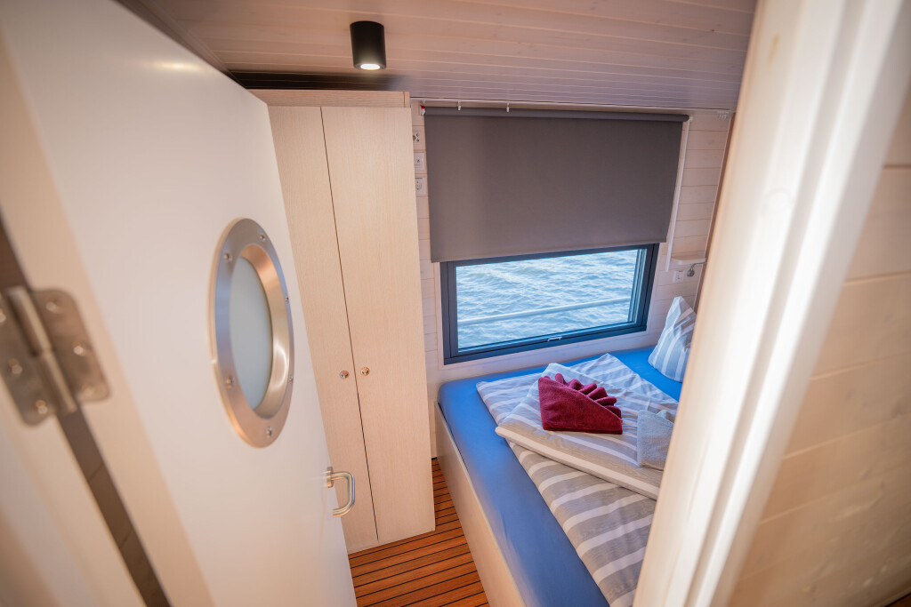 Hausboote Woma D13 Emsel, Baujahr 2024, liegt im Röblinsee Marina, Brandenburg, Deutschland vor Anker. Es verfügt über 2 Kabinen und bietet Platz für 4 + 2 Personen mit 1 Toiletten. Bettwäsche und Küchenausstattung sind im Preis inbegriffen.