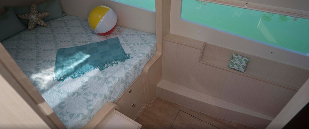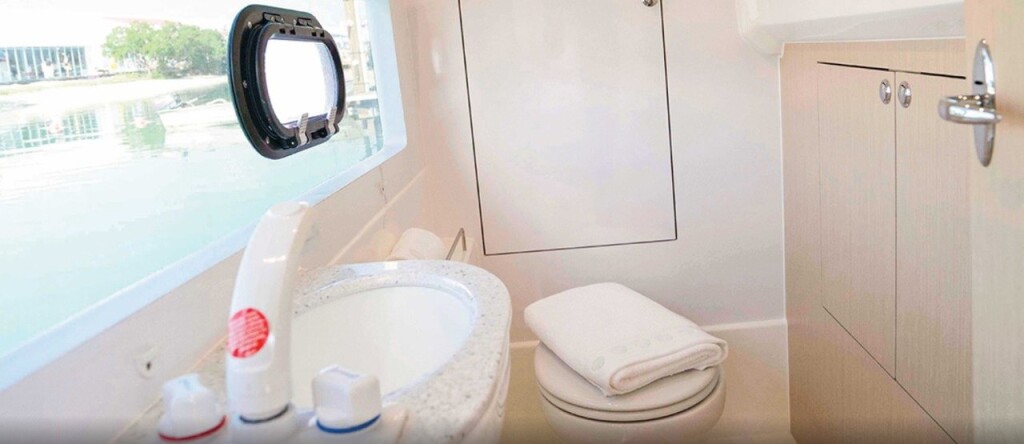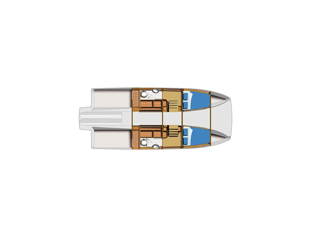 Power catamaran Aquila 36 CARANTHIR, built in 2020 is anchored in the Martinique, Le Marin, Caribbean - Martinique, Caribbean. It has 2 cabins, can accommodate 4 people and has 2 toilets. Bed linen and kitchen equipment are included in the price.