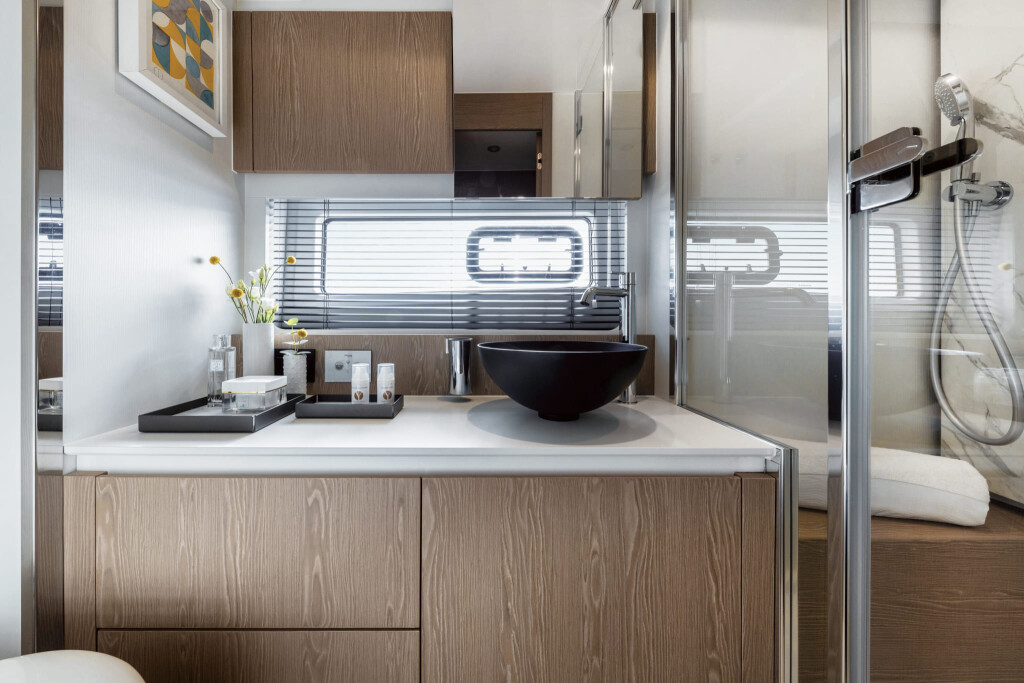 Motor yacht Azimut 53 White, built in 2024 is anchored in the Marina Lav - Podstrana, Croatia - Split, Croatia. It has 3 + 1 cabins, can accommodate 6 + 1 people and has 2 + 1 toilets. Bed linen and kitchen equipment are included in the price.
