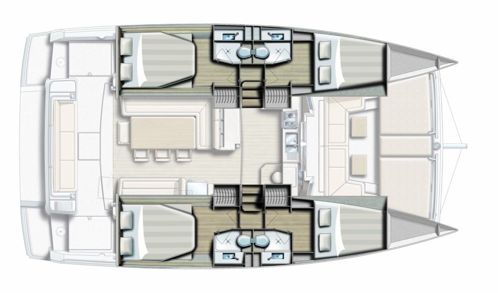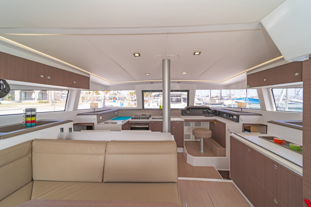Catamaran Bali 4.1 Crystal Waters, built in 2019 is anchored in the Kos, Kos Marina, Greece - Dodecanese, Greece. It has 4 + 2 cabins, can accommodate 8 + 2 people and has 4 toilets. Bed linen and kitchen equipment are included in the price.