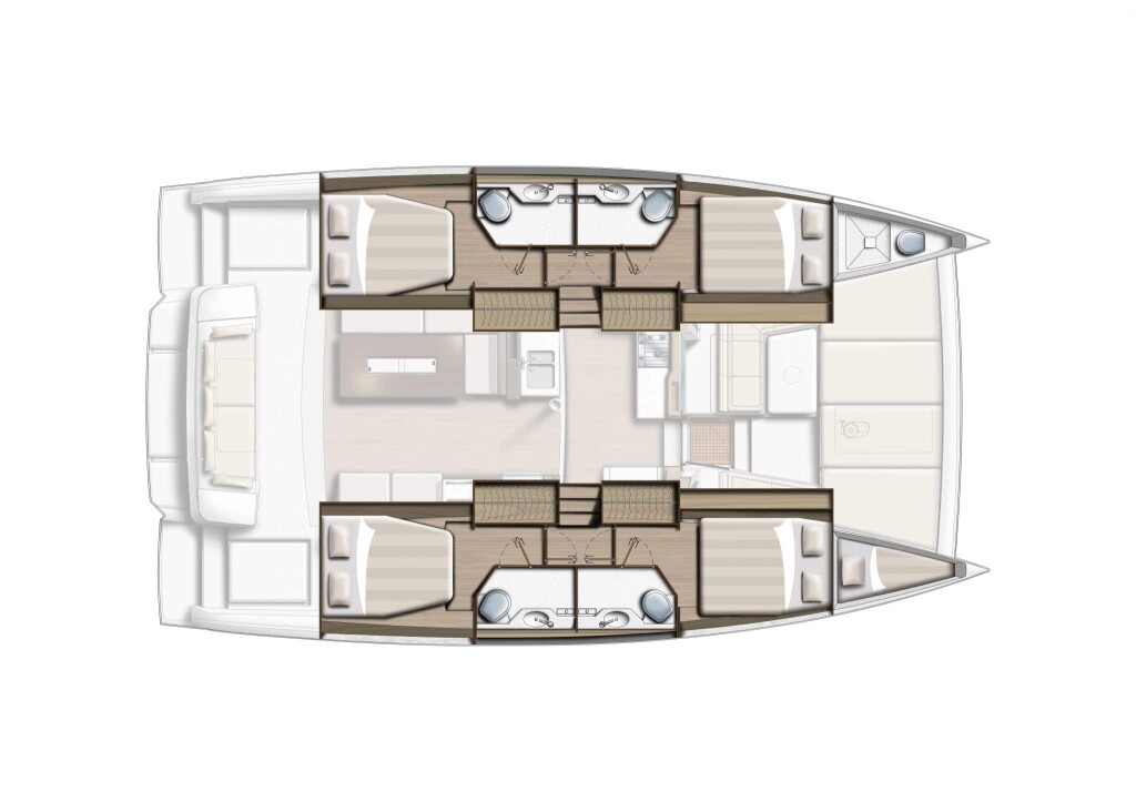 Catamaran Bali 4.2 Beta, built in 2023 is anchored in the Porto di Cecina, Italy - Tuscany, Italy. It has 4 + 1 cabins, can accommodate 8 + 1 people and has 4 + 1 toilets. Bed linen and kitchen equipment are included in the price.