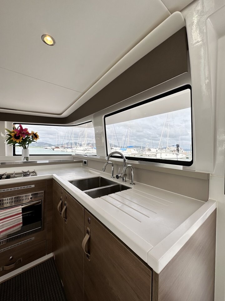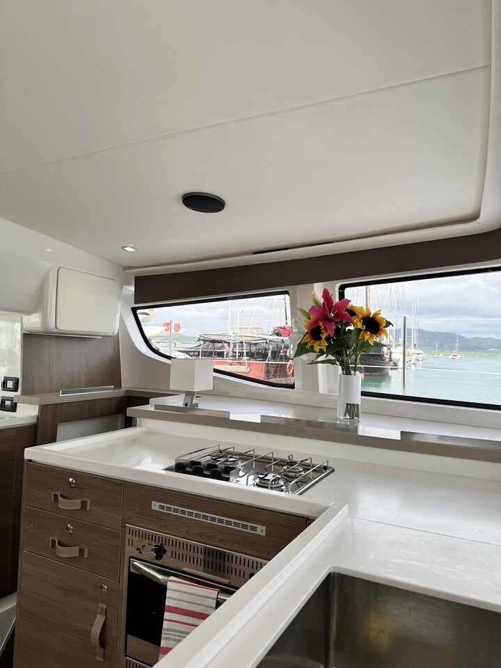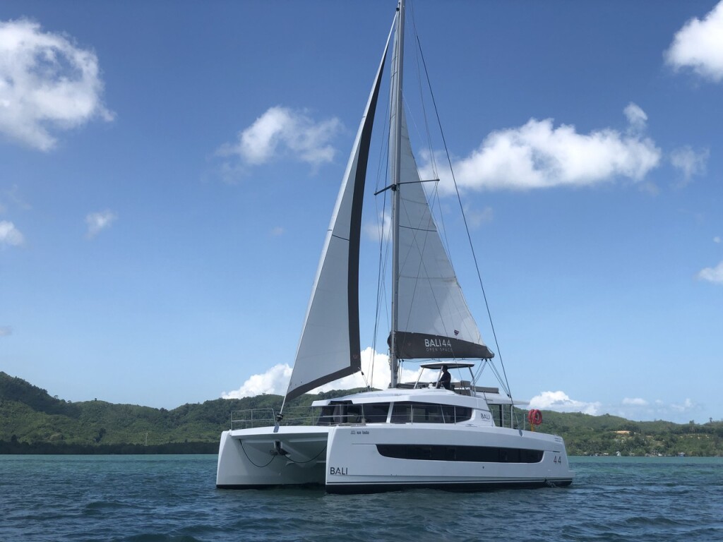 Catamaran Bali 4.4 Belle Isle, built in 2023 is anchored in the Phuket, Yacht Haven Marina, Thailand - Phuket, Thailand . It has 4 + 2 cabins, can accommodate 8 + 1 people and has 4 toilets. Bed linen and kitchen equipment are included in the price.