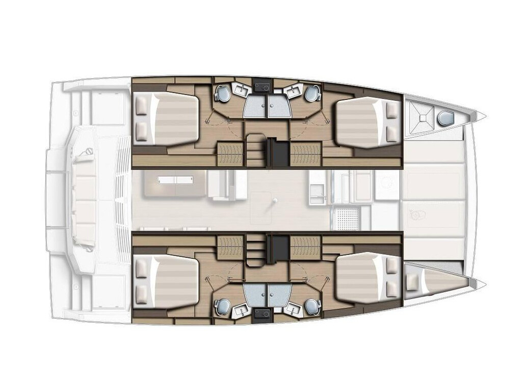 Catamaran Bali 4.4 Enterprise, built in 2023 is anchored in the Bodrum/Turgutreis/D-Marin, Turkey - Aegean, Turkey. It has 4 + 1 cabins, can accommodate 8 + 2 people and has 4 + 1 toilets. Bed linen and kitchen equipment are included in the price.