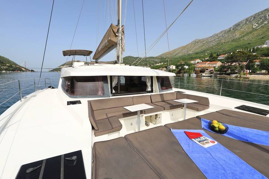 Catamaran Bali 4.5 Nouvelle Vague, built in 2017 is anchored in the Marina, Luka Marina (near Trogir), Croatia - Split, Croatia. It has 4 + 2 cabins, can accommodate 8 + 2 people and has 4 toilets. Bed linen and kitchen equipment are included in the price.