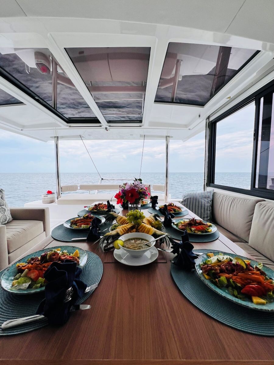 Catamaran Bali 4.6 First Tracks, built in 2023 is anchored in the Belize, Old Belize Marina , Belize - Belize, Belize. It has 4 cabins, can accommodate 8 people and has 4 toilets. Bed linen and kitchen equipment are included in the price.