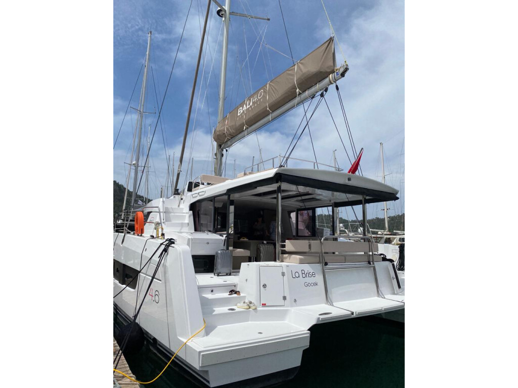 Catamaran Bali 4.6 La Brise, built in 2021 is anchored in the Fethiye, Yacht Classic Hotel Marina, Turkey - Aegean, Turkey. It has 4 + 1 cabins, can accommodate 8 + 1 people and has 4 + 1 toilets. Bed linen and kitchen equipment are included in the price.