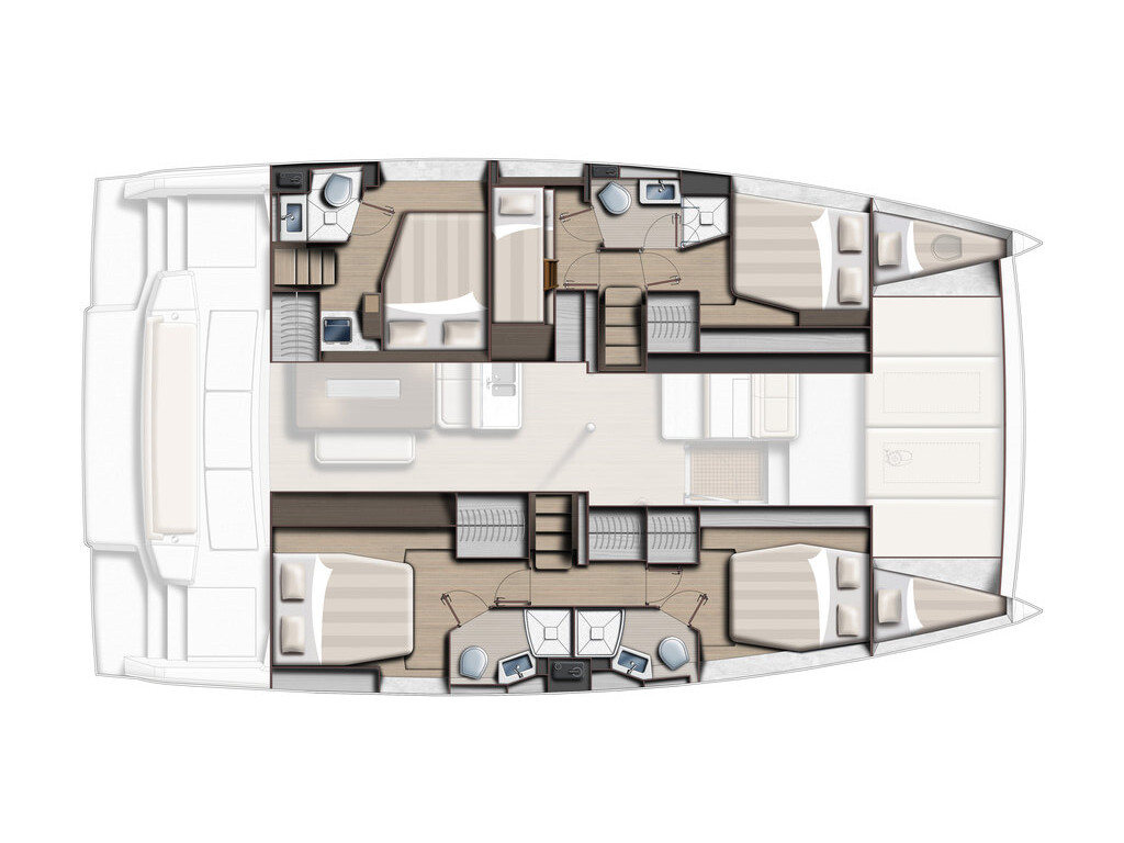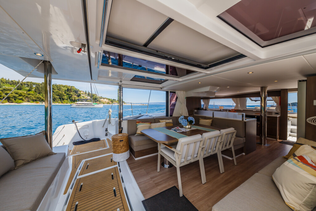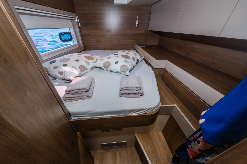 Catamaran Bali 4.6 Nouvelle Lune, built in 2022 is anchored in the Dubrovnik, Komolac, ACI Marina Dubrovnik, Croatia - Dubrovnik, Croatia. It has 5 + 2 cabins, can accommodate 10 + 2 people and has 4 + 1 toilets. Bed linen and kitchen equipment are included in the price.