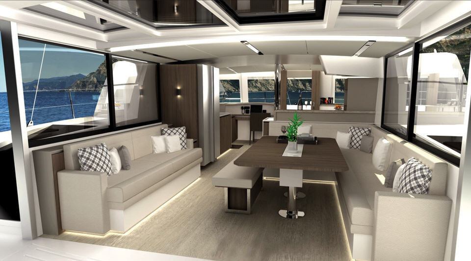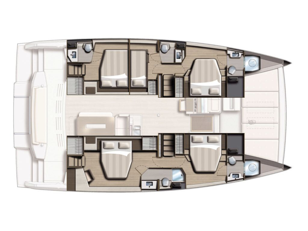 Catamaran Bali 4.8 AD MAIORA, built in 2023 is anchored in the Trogir, Yachtclub Seget (Marina Baotić), Croatia - Split, Croatia. It has 5 + 2 cabins, can accommodate 10 + 2 people and has 5 toilets. Bed linen and kitchen equipment are included in the price.
