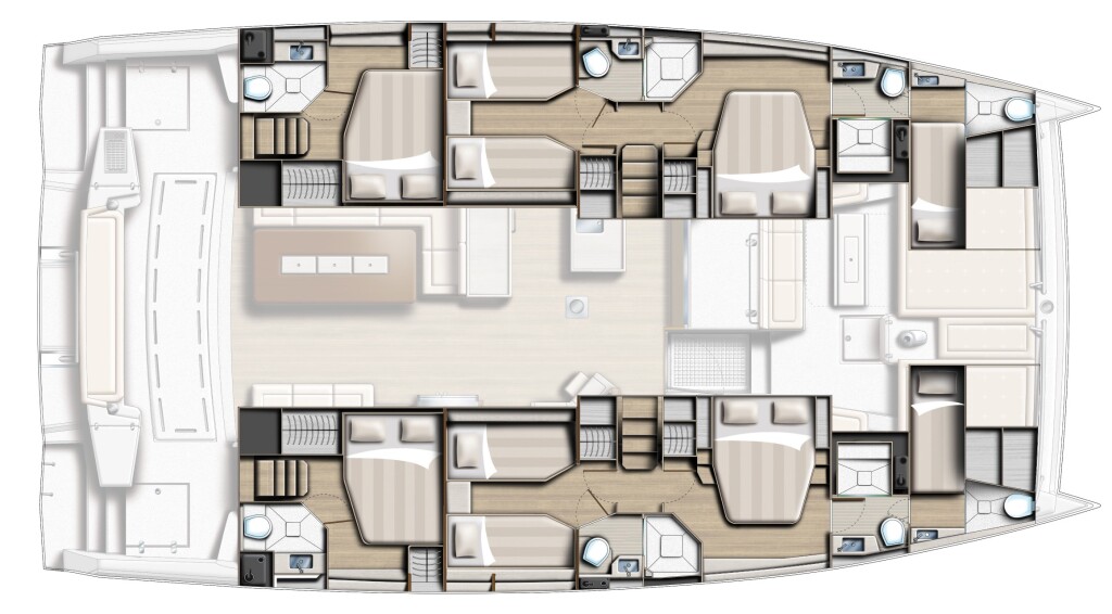 Catamaran Bali 5.4 DREAM BORA, built in 2024 is anchored in the Polynesia, Raiatea, French Polynesia - French Polynesia, French Polynesia. It has 6 + 2 cabins, can accommodate 12 + 2 people and has 6 + 2 toilets. Bed linen and kitchen equipment are included in the price.