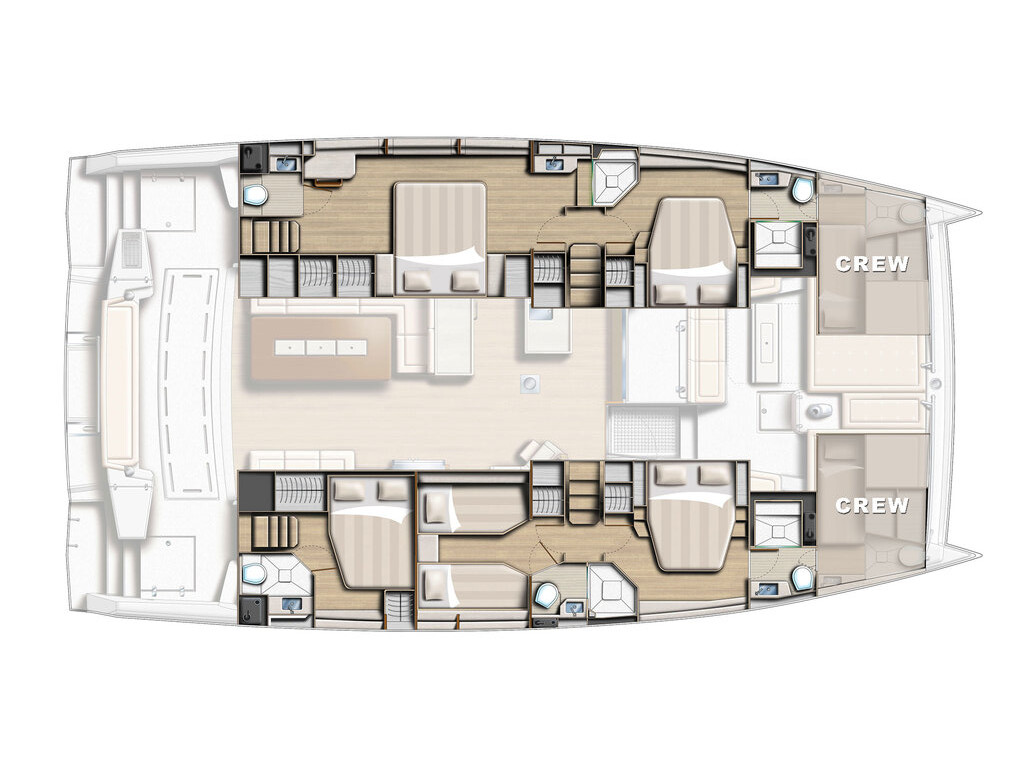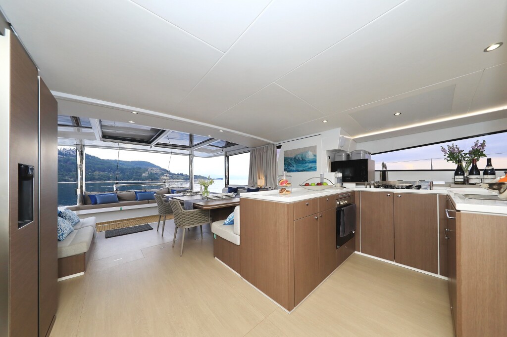 Catamaran Bali 5.4 Marea I, built in 2020 is anchored in the Marina Kastela, Croatia - Split, Croatia. It has 5 + 2 cabins, can accommodate 10 + 2 people and has 5 + 2 toilets. Bed linen and kitchen equipment are included in the price.