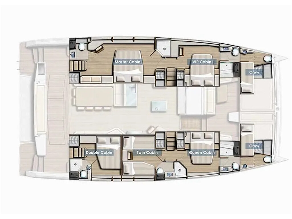 Catamaran Bali 5.4 Ortensia, built in 2020 is anchored in the Porto Rotondo, Marina di Asfodeli, Italy - Sardinia, Italy. It has 5 + 2 cabins, can accommodate 10 + 2 people and has 5 + 2 toilets. Bed linen and kitchen equipment are included in the price.