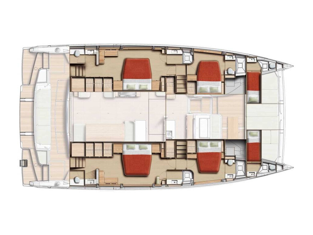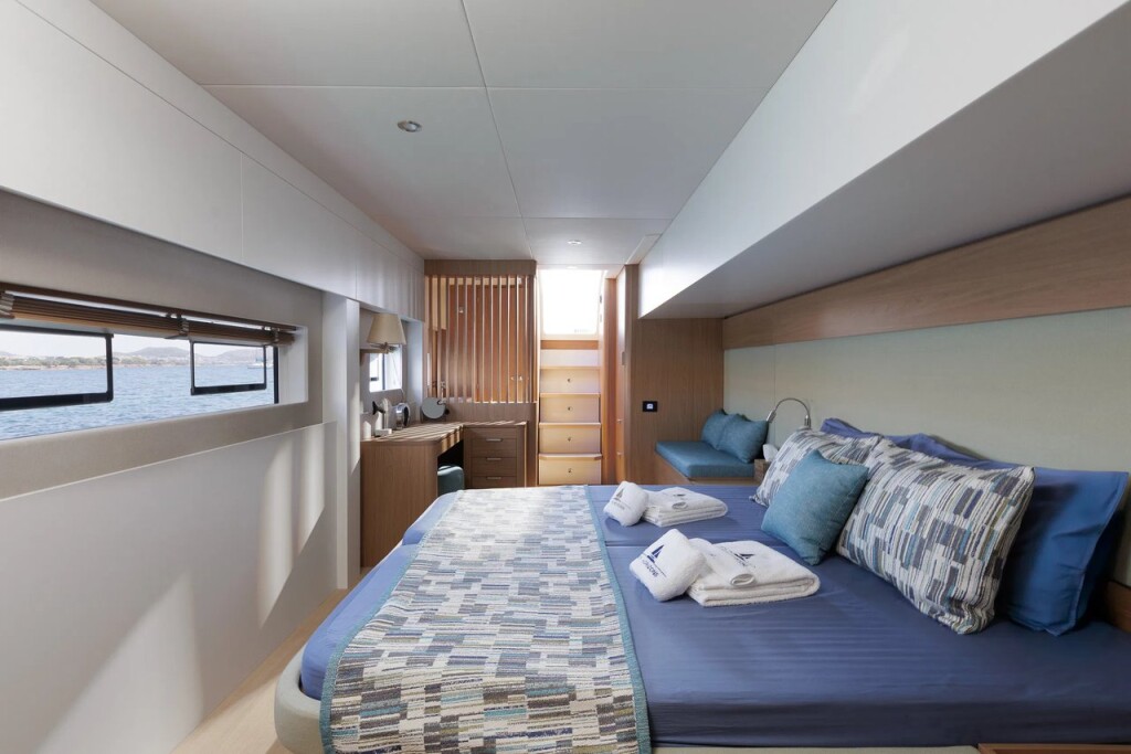 Catamaran Bali 5.8 New Horizons 4, built in 2025 is anchored in the Athens, Alimos marina, Greece - Peloponnese, Greece. It has 4 cabins, can accommodate 8 people and has 4 toilets. Bed linen and kitchen equipment are included in the price.