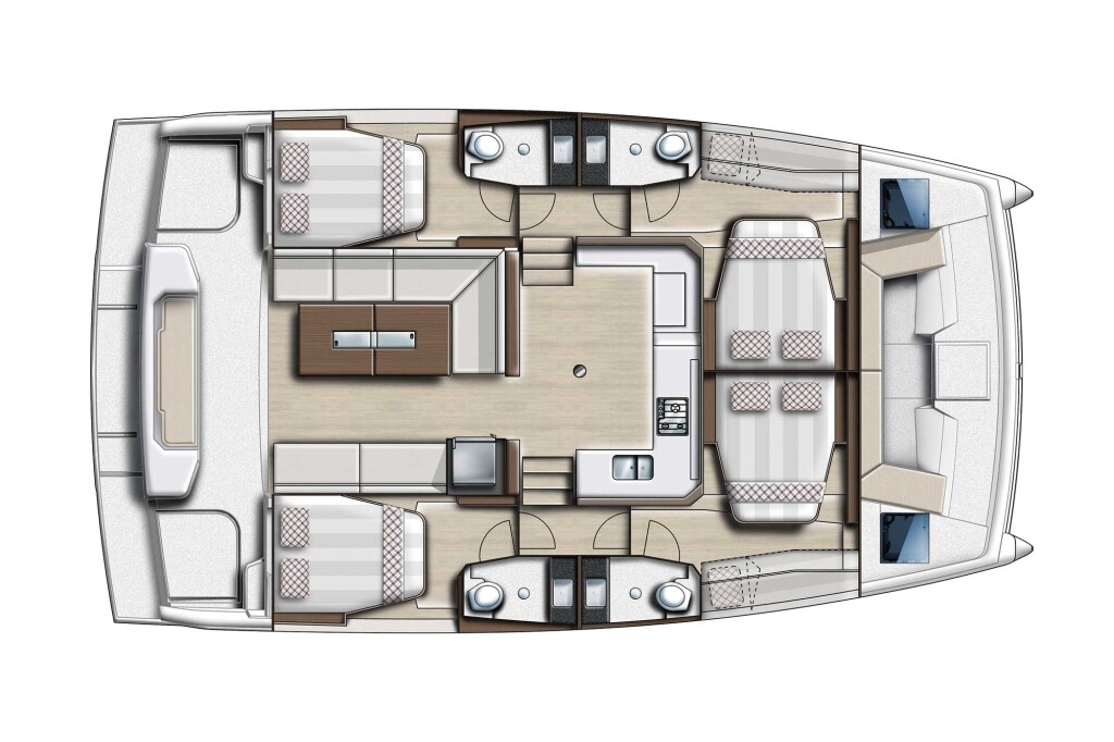 The Bali Catspace is particularly popular due to its special equipment such as Electric toilet, Cockpit cushions, Dishwasher, Solar panels, Air Conditioning, Generator, Heating, Autopilot, Bathing platform, Inverter. If you have any questions, our team will be happy to answer them personally!