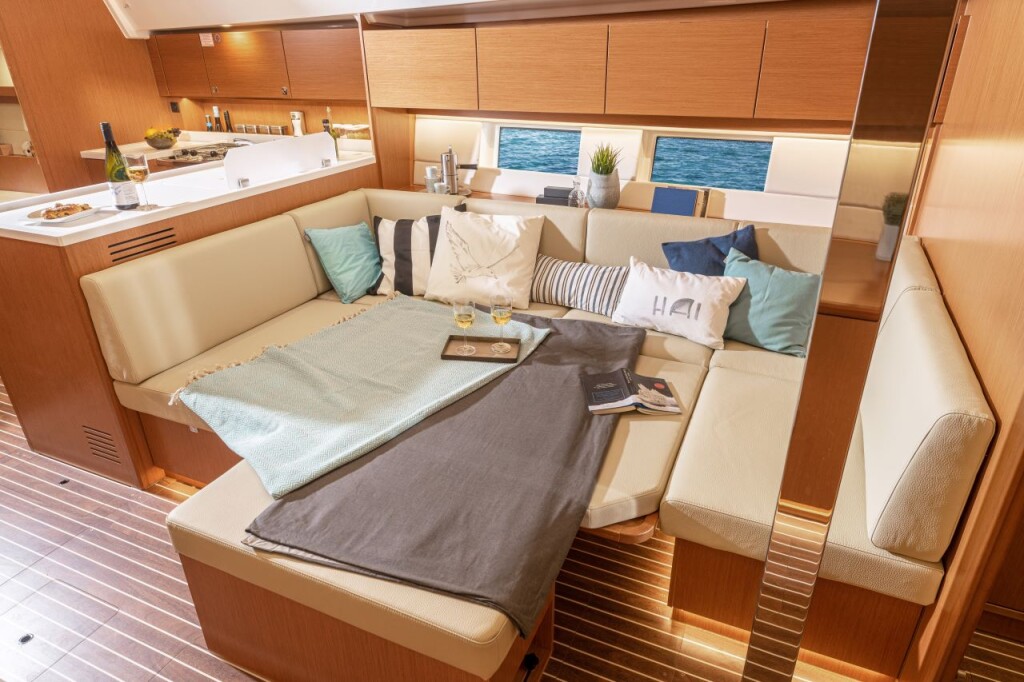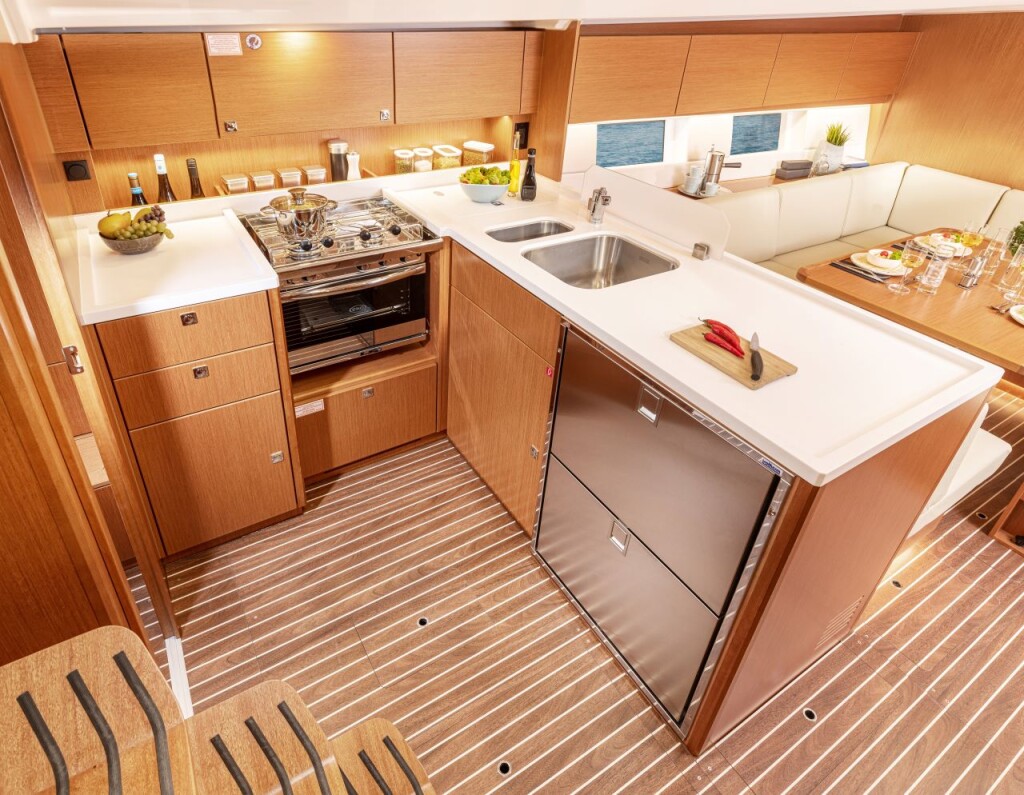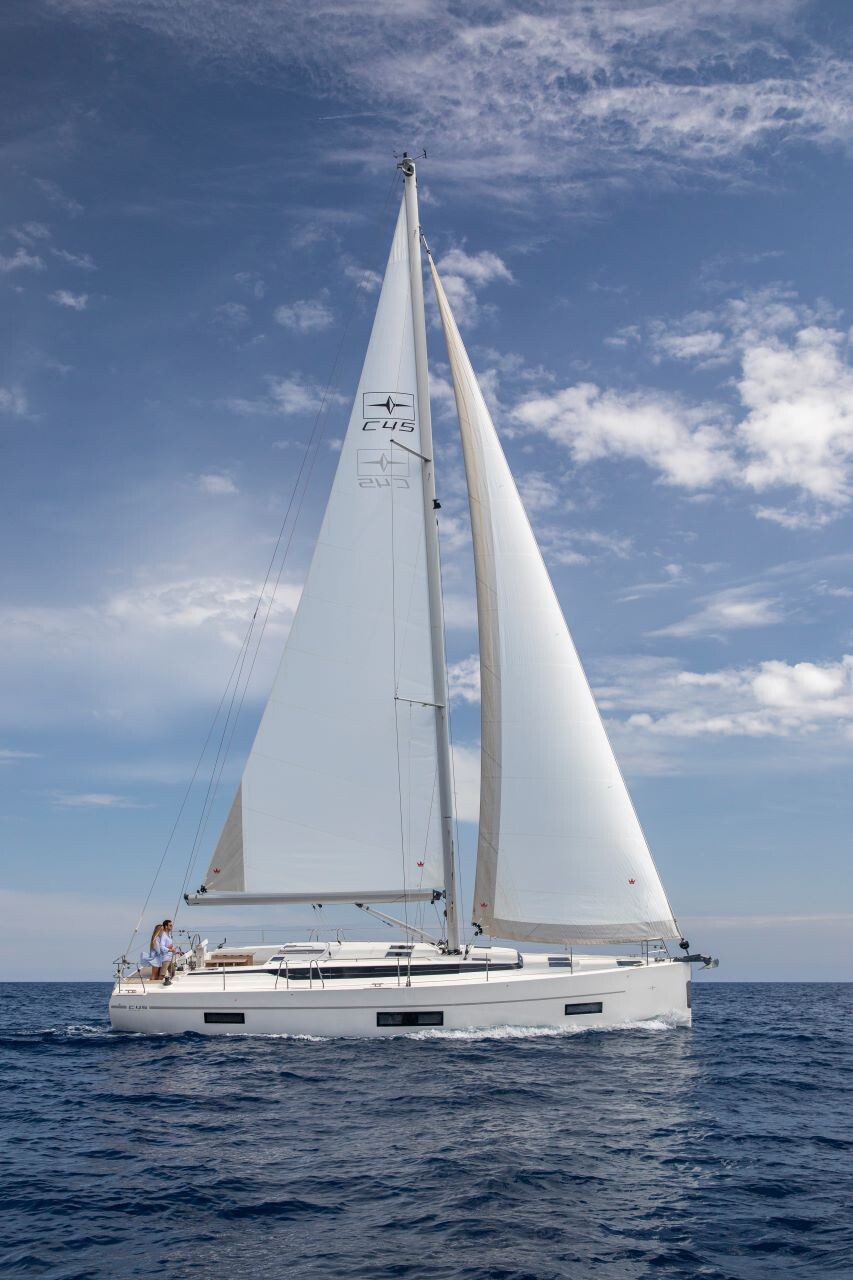 Sailing yacht Bavaria C45 Style Santa Cruz, built in 2023 is anchored in the Fethiye, Yacht Classic Hotel Marina, Turkey - Aegean, Turkey. It has 3 cabins, can accommodate 6 + 1 people and has 2 toilets. Bed linen and kitchen equipment are included in the price.