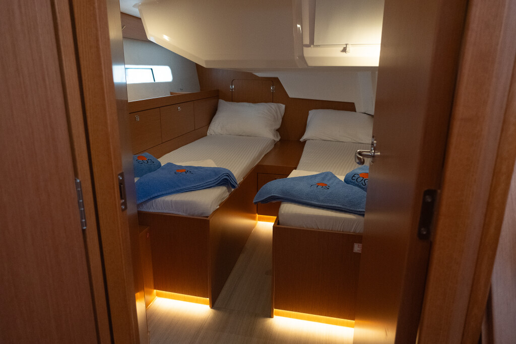 Sailing yacht Bavaria C46 Iris, built in 2024 is anchored in the Fethiye, Ece Saray Marina Resort, Turkey - Aegean, Turkey. It has 5 cabins, can accommodate 10 + 1 people and has 3 toilets. Bed linen and kitchen equipment are included in the price.