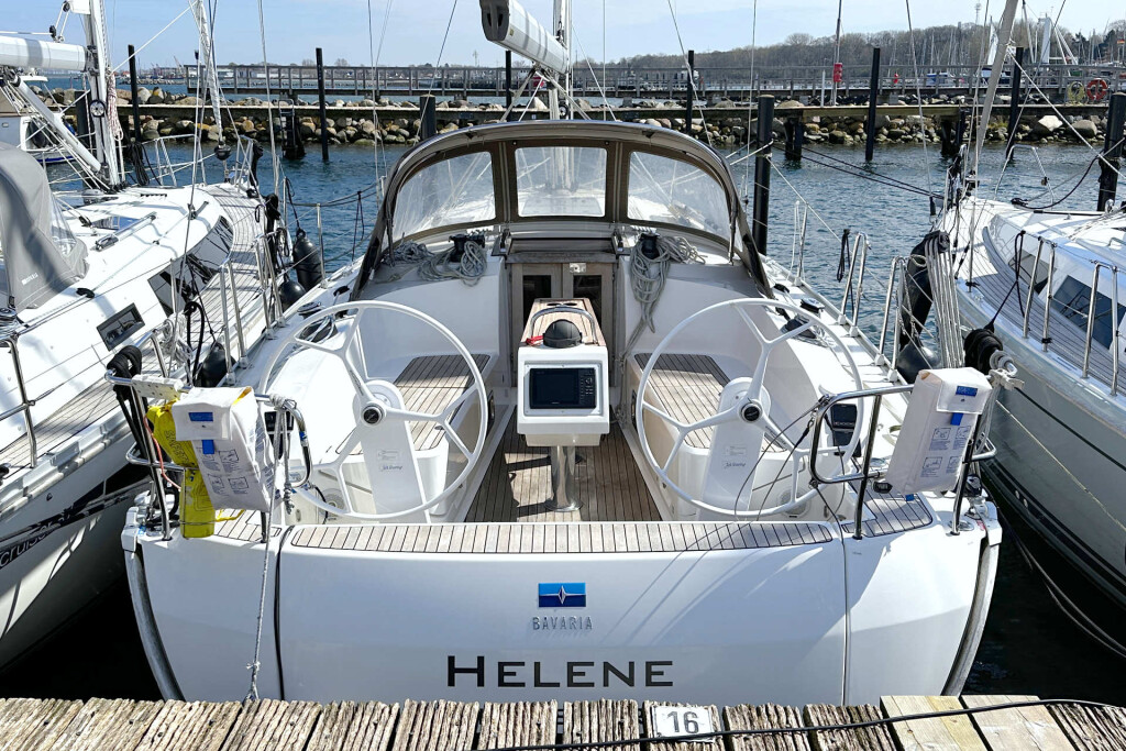 Sailing yacht Bavaria Cruiser 37 Helene, built in 2015 is anchored in the Heiligenhafen, Germany - Schleswig-Holstein, Germany. It has 3 cabins, can accommodate 6 people and has 1 toilets. Bed linen and kitchen equipment are included in the price.