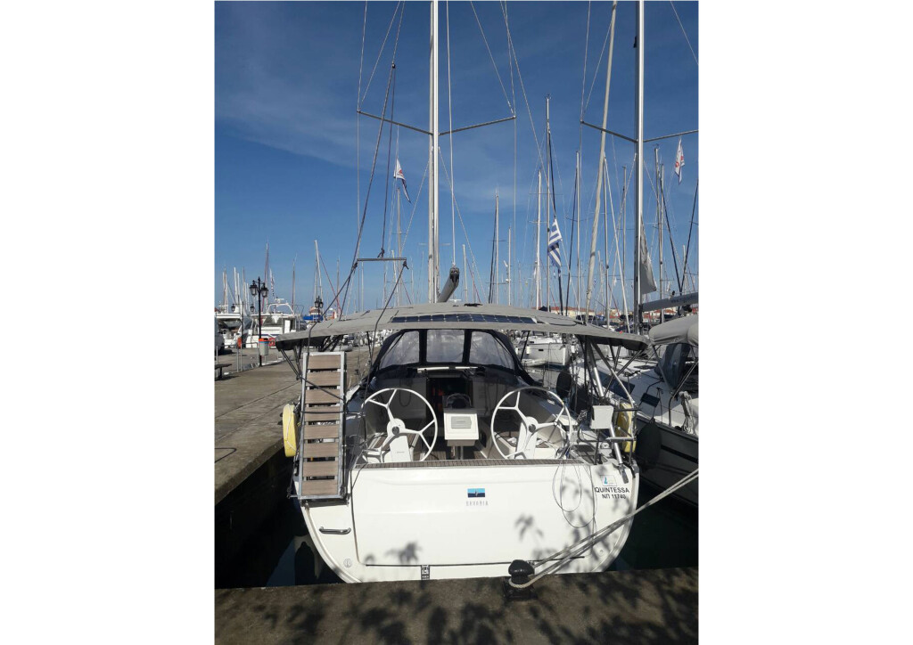 Sailing yacht Bavaria Cruiser 41 Quintessa, built in 2017 is anchored in the Lefkas, D-Marin, Greece - Ionian Islands, Greece. It has 3 cabins, can accommodate 6 + 1 people and has 2 toilets. Bed linen and kitchen equipment are included in the price.