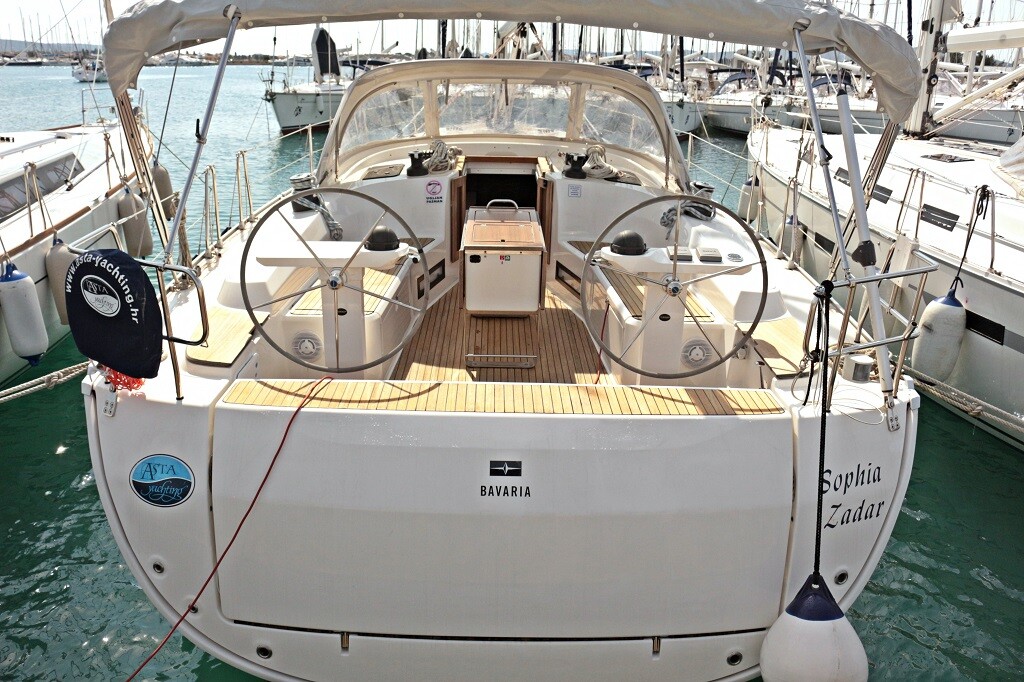Sailing yacht Bavaria Cruiser 45 Sophia, built in 2012 is anchored in the Sukosan, D-Marin Dalmacija Marina, Croatia - Zadar, Croatia. It has 4 cabins, can accommodate 8 + 1 people and has 3 toilets. Bed linen and kitchen equipment are included in the price.