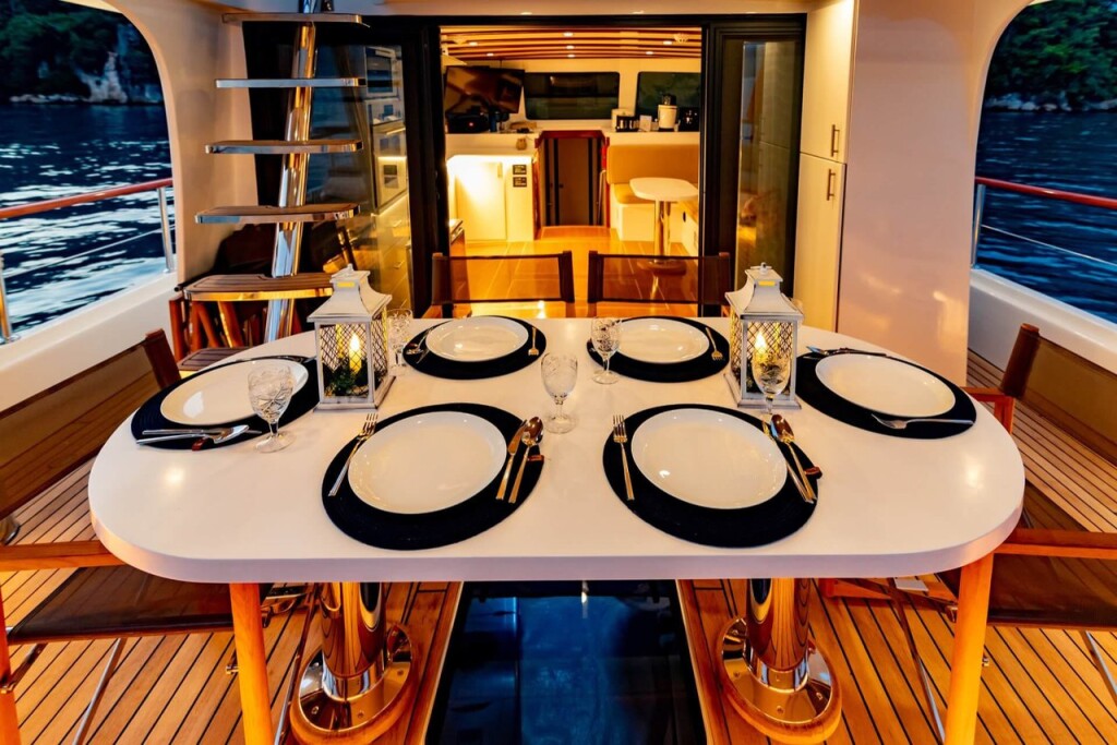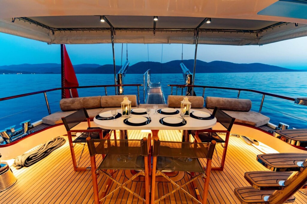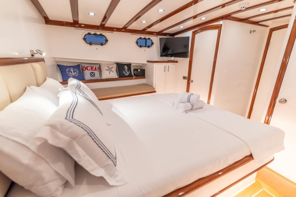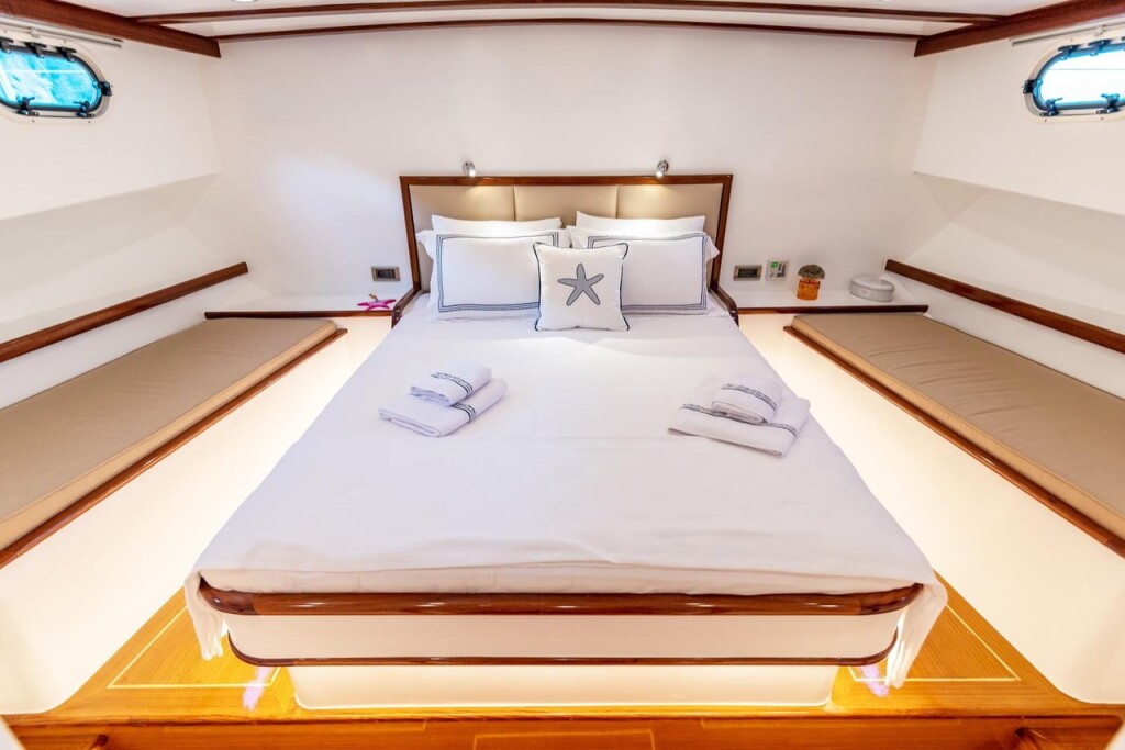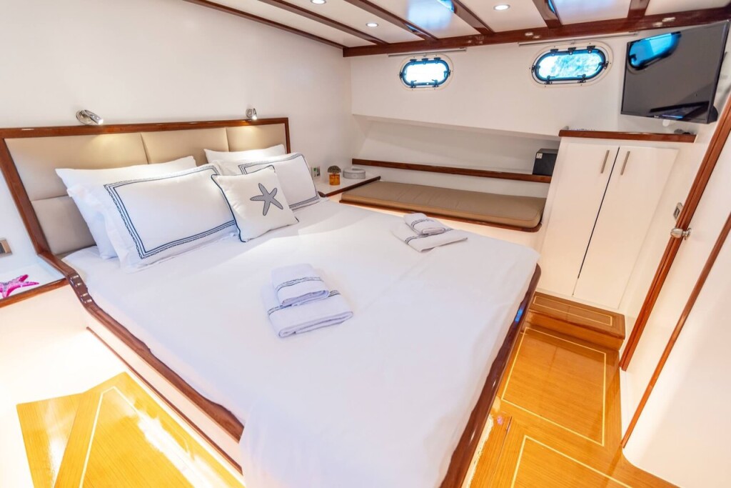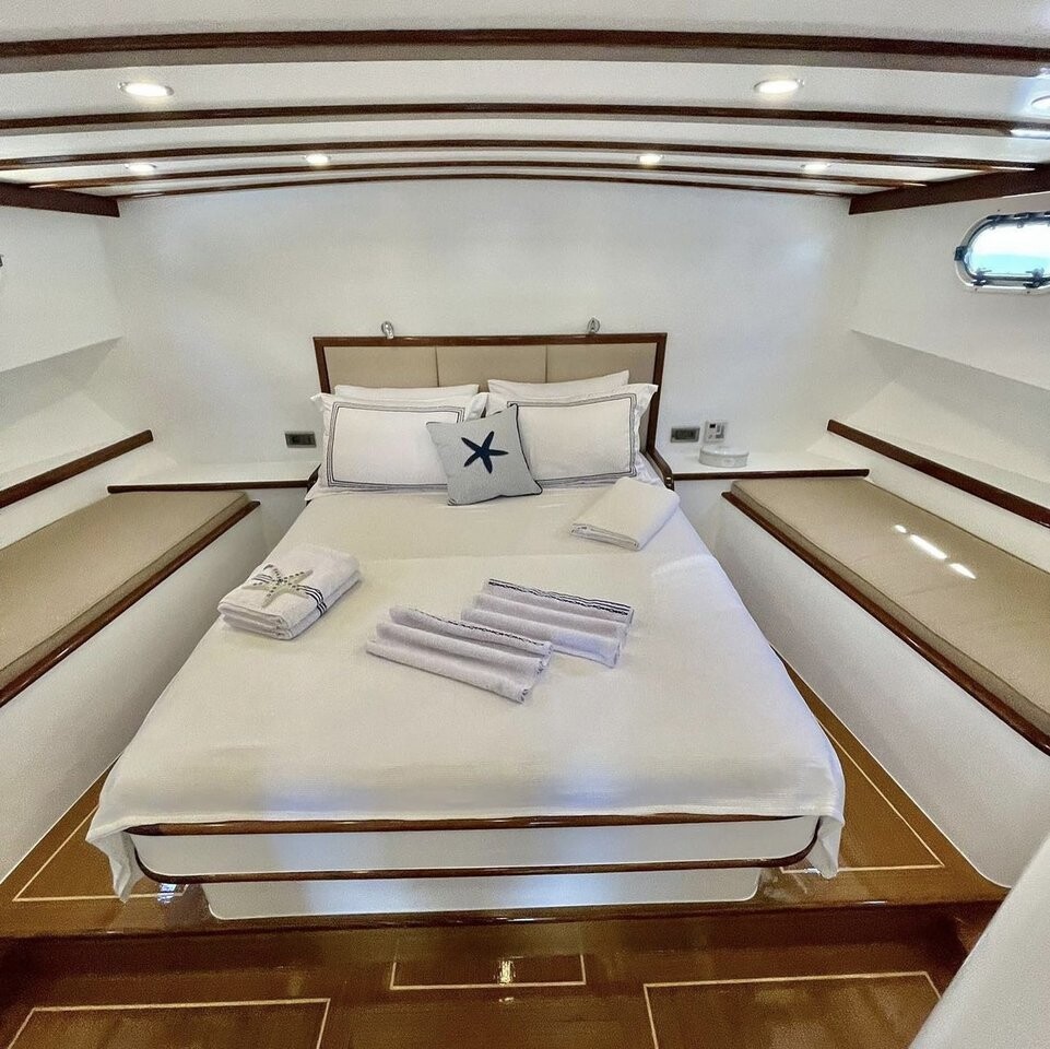 Gulet Bernis Bernis, built in 2022 is anchored in the Göcek, Turkey - Aegean, Turkey. It has 3 cabins, can accommodate 6 people and has 3 toilets. Bed linen and kitchen equipment are included in the price.