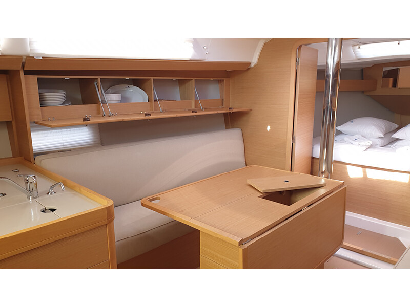 Sailing yacht Dufour 360 GL Nada, built in 2019 is anchored in the Marina Kastela, Croatia - Split, Croatia. It has 2 cabins, can accommodate 4 + 2 people and has 1 toilets. Bed linen and kitchen equipment are included in the price.