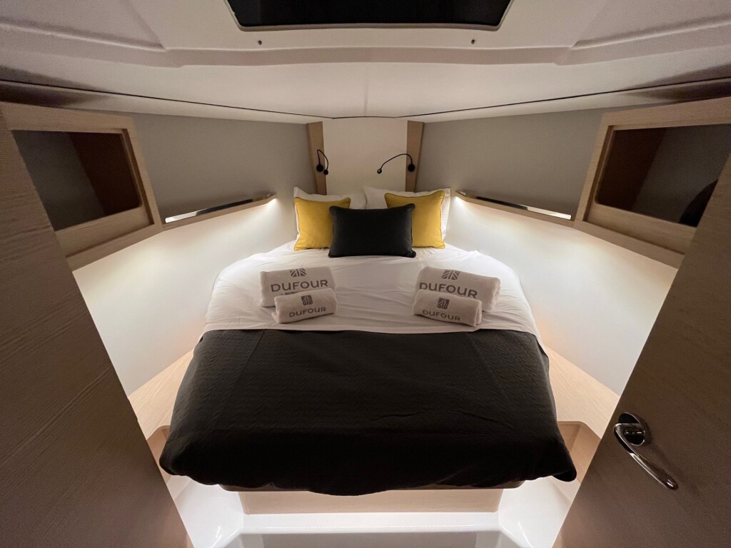 Sailing yacht Dufour 37 Alma, built in 2023 is anchored in the Athens, Alimos marina, Greece - Peloponnese, Greece. It has 3 cabins, can accommodate 6 + 2 people and has 1 toilets. Bed linen and kitchen equipment are included in the price.