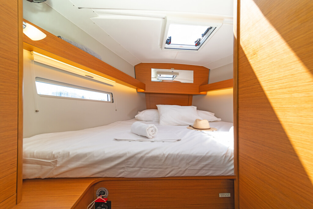 Sailing yacht Dufour 390 GL Agnes, built in 2022 is anchored in the Kos, Kos Marina, Greece - Dodecanese, Greece. It has 3 cabins, can accommodate 6 people and has 3 toilets. Bed linen and kitchen equipment are included in the price.