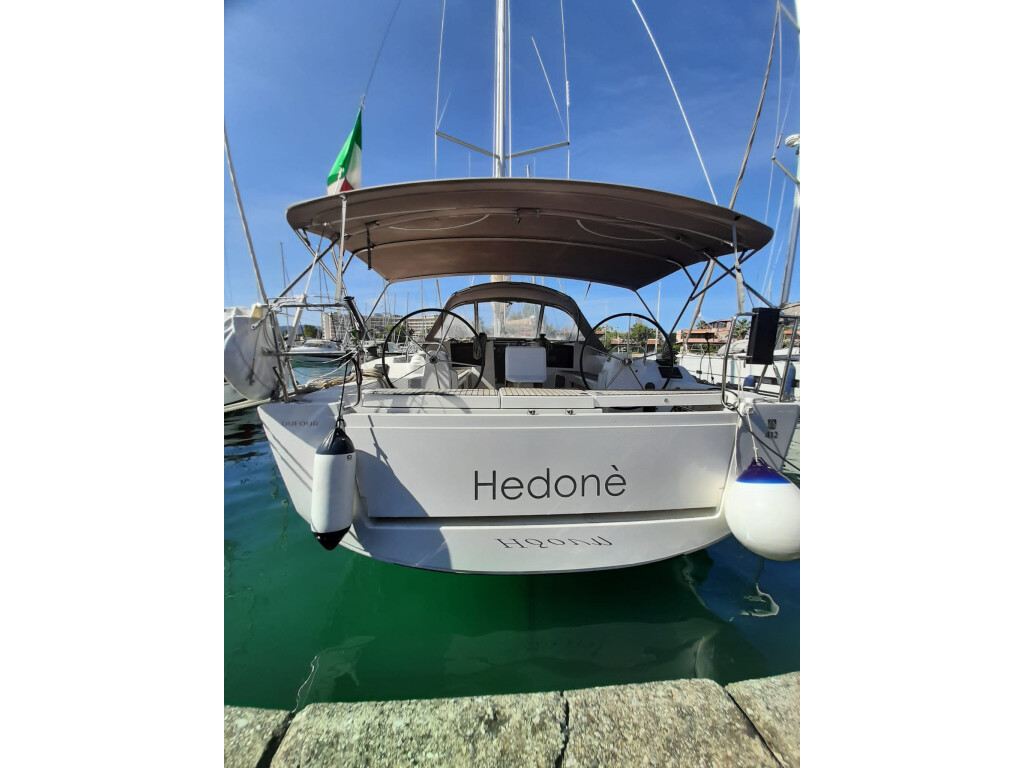 Sailing yacht Dufour 412 GL Hedone, built in 2020 is anchored in the Sicily, Portorosa, Italy - Sicily, Italy. It has 3 cabins, can accommodate 6 + 2 people and has 2 toilets. Bed linen and kitchen equipment are included in the price.