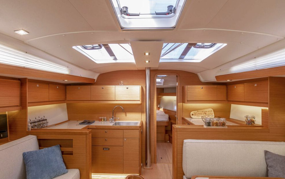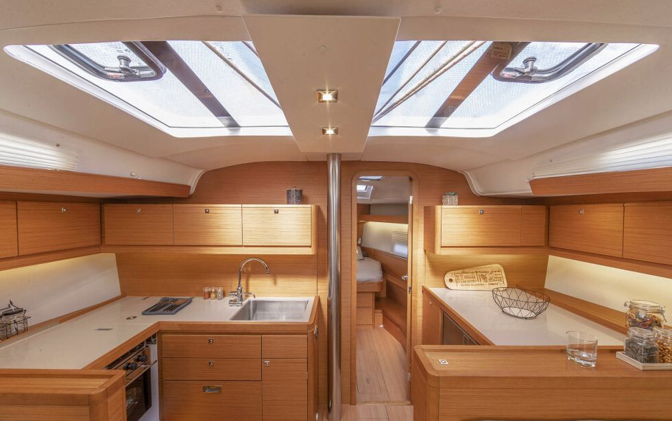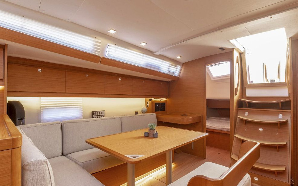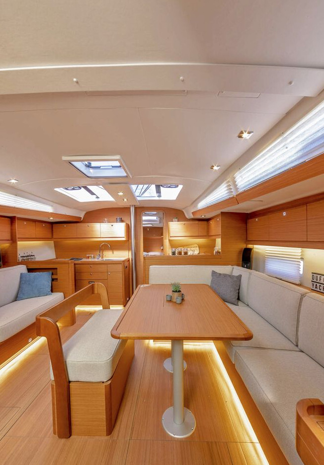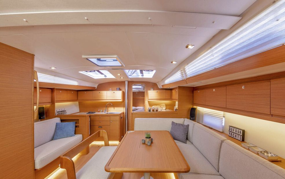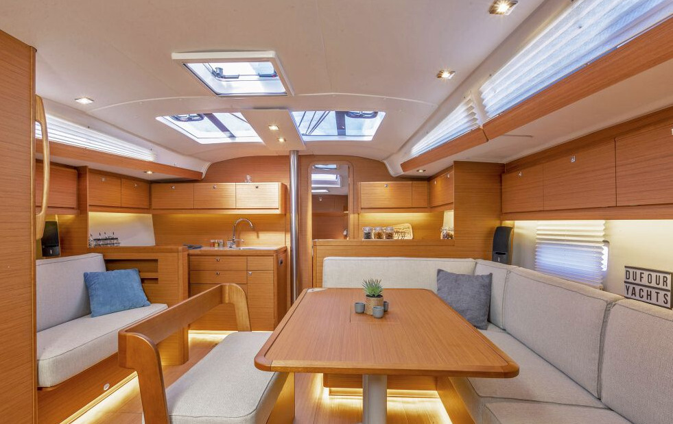 Sailing yacht Dufour 430 GL M T POCKETS, built in 2023 is anchored in the Athens, Alimos marina, Greece - Peloponnese, Greece. It has 4 cabins, can accommodate 8 + 2 people and has 2 toilets. Bed linen and kitchen equipment are included in the price.