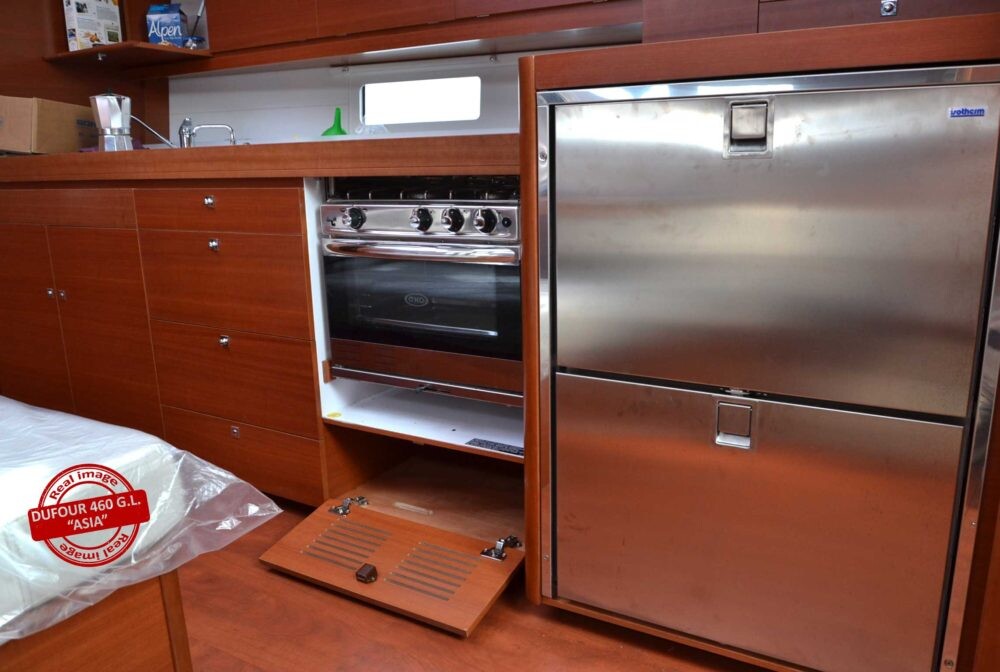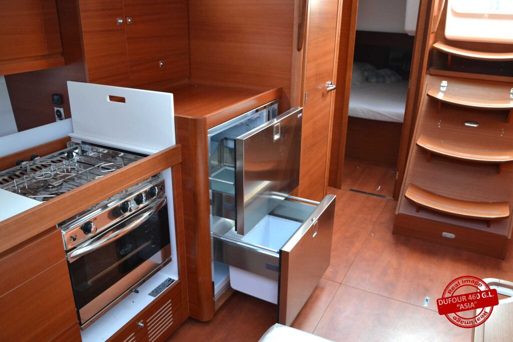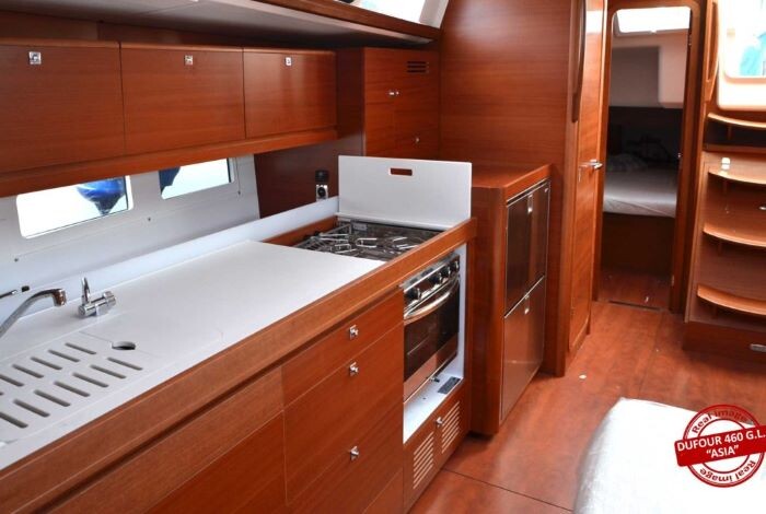 Sailing yacht Dufour 460 GL Asia, built in 2016 is anchored in the Marina di Scarlino - Follonica, Italy - Tuscany, Italy. It has 4 cabins, can accommodate 8 + 2 people and has 4 toilets. Bed linen and kitchen equipment are included in the price.