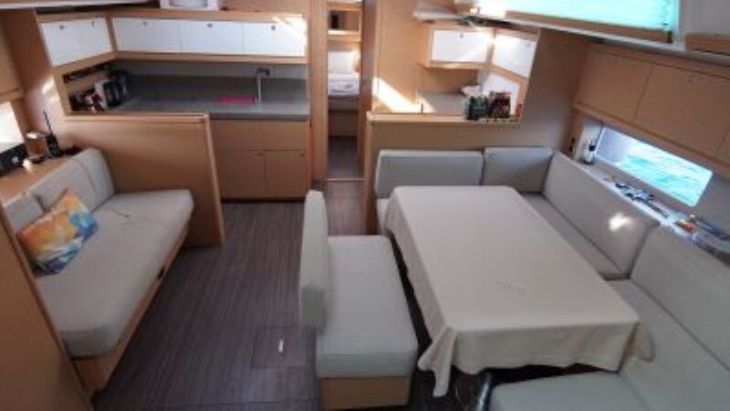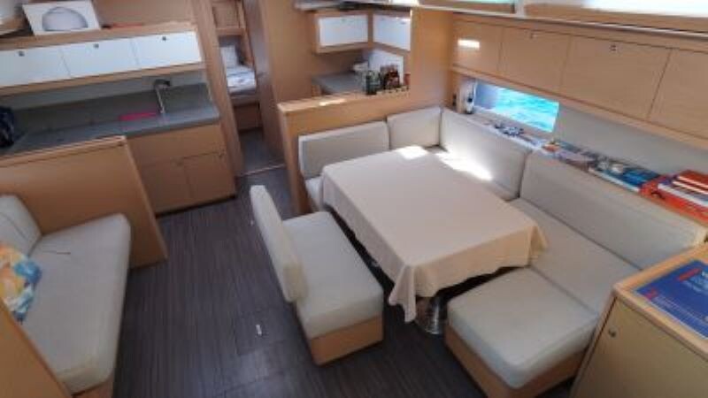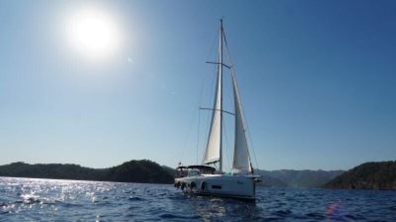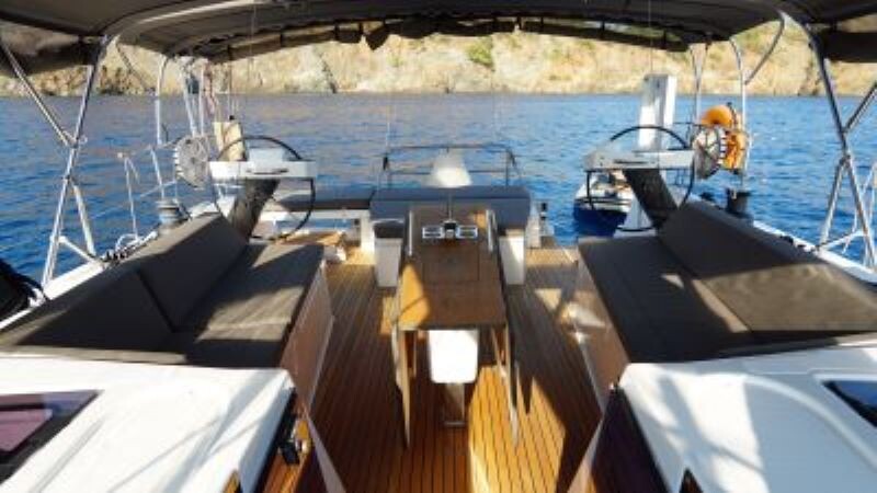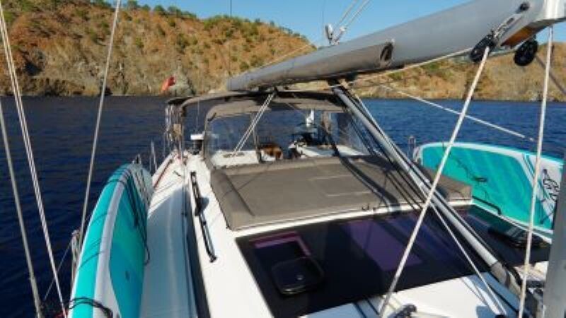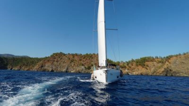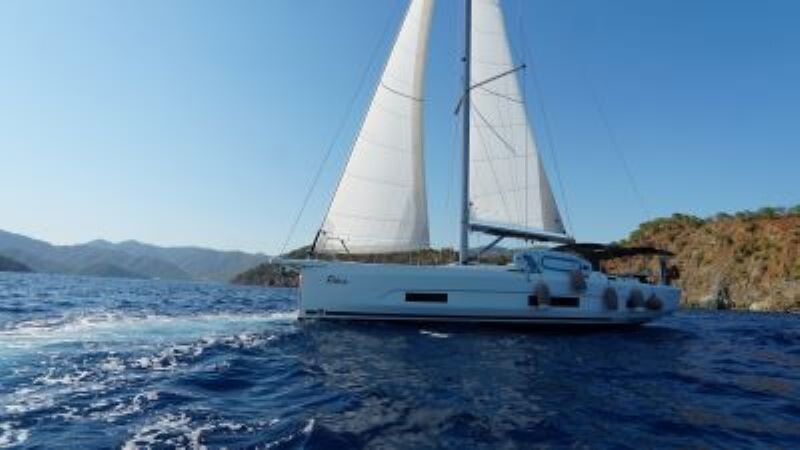 Sailing yacht Dufour 470 Robin, built in 2022 is anchored in the Göcek, Turkey - Aegean, Turkey. It has 3 cabins, can accommodate 6 people and has 2 toilets. Bed linen and kitchen equipment are included in the price.