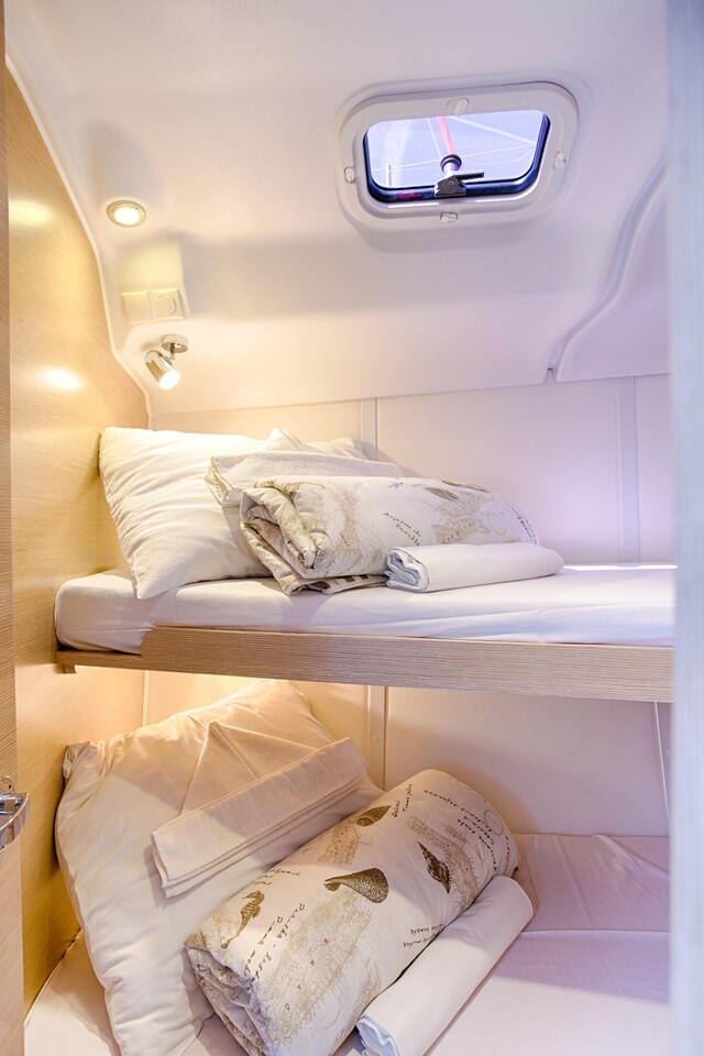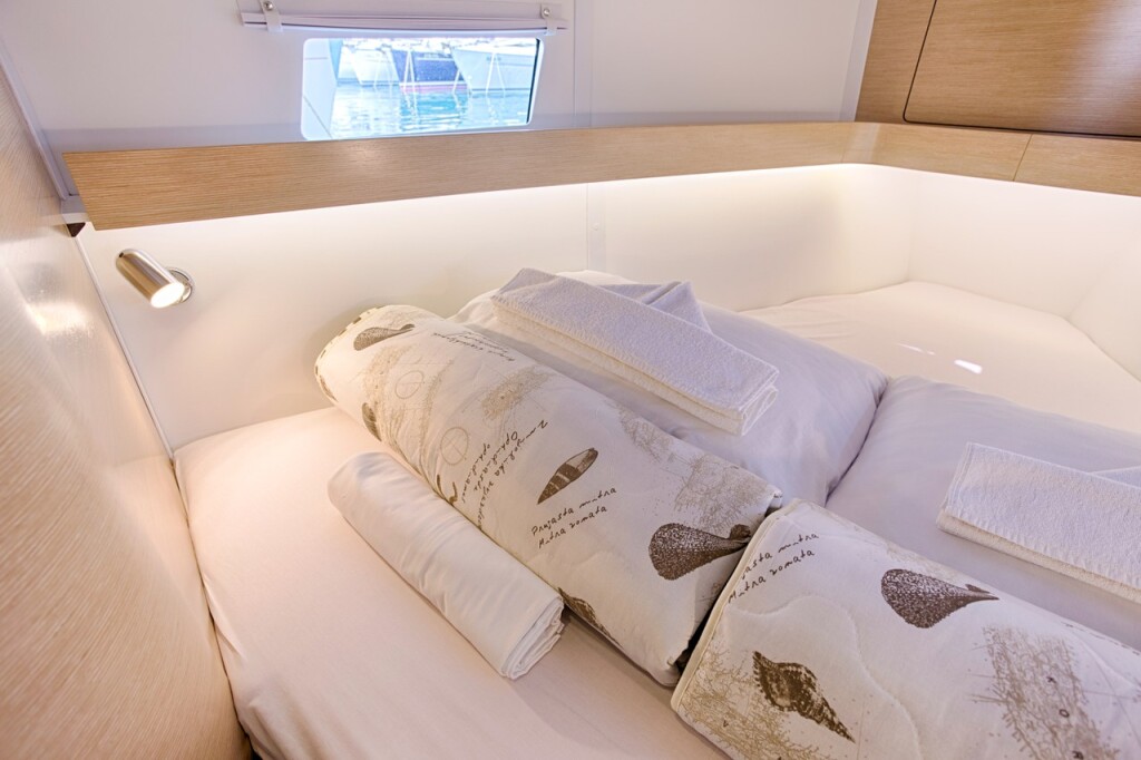 Sailing yacht Elan Impression 45 Lion, built in 2015 is anchored in the ACI Marina Split, Croatia - Split, Croatia. It has 4 cabins, can accommodate 8 + 2 people and has 2 toilets. Bed linen and kitchen equipment are included in the price.