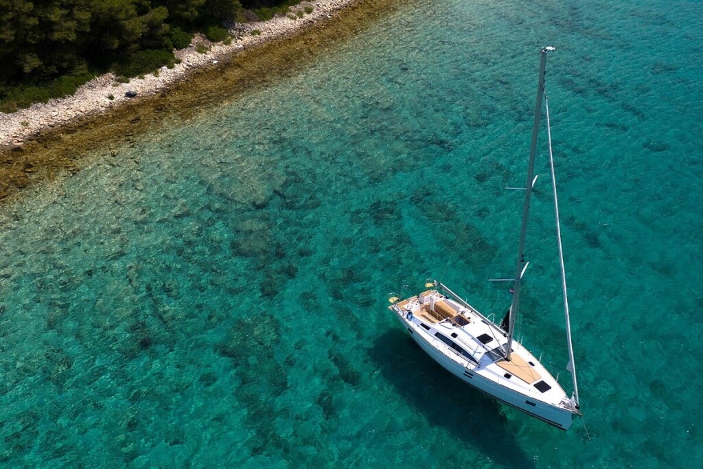 Sailing yacht Elan Impression 45.1 Moon Pearl, built in 2023 is anchored in the Marina Kornati, Biograd, Croatia - Zadar, Croatia. It has 4 cabins, can accommodate 8 + 2 people and has 2 toilets. Bed linen and kitchen equipment are included in the price.