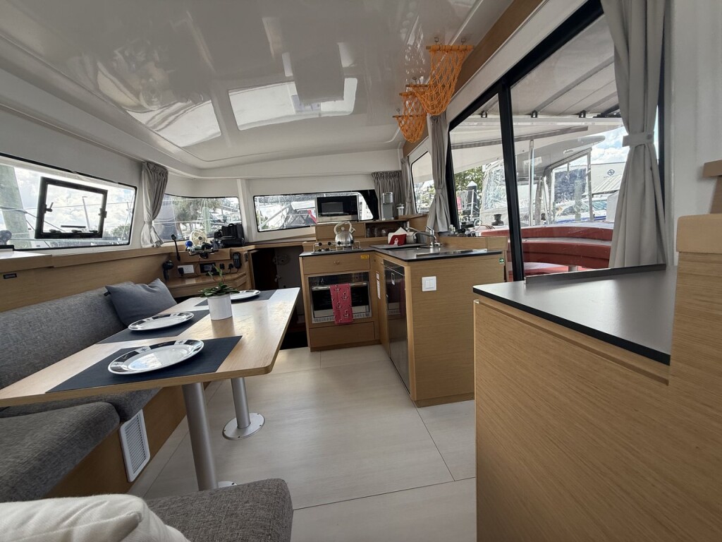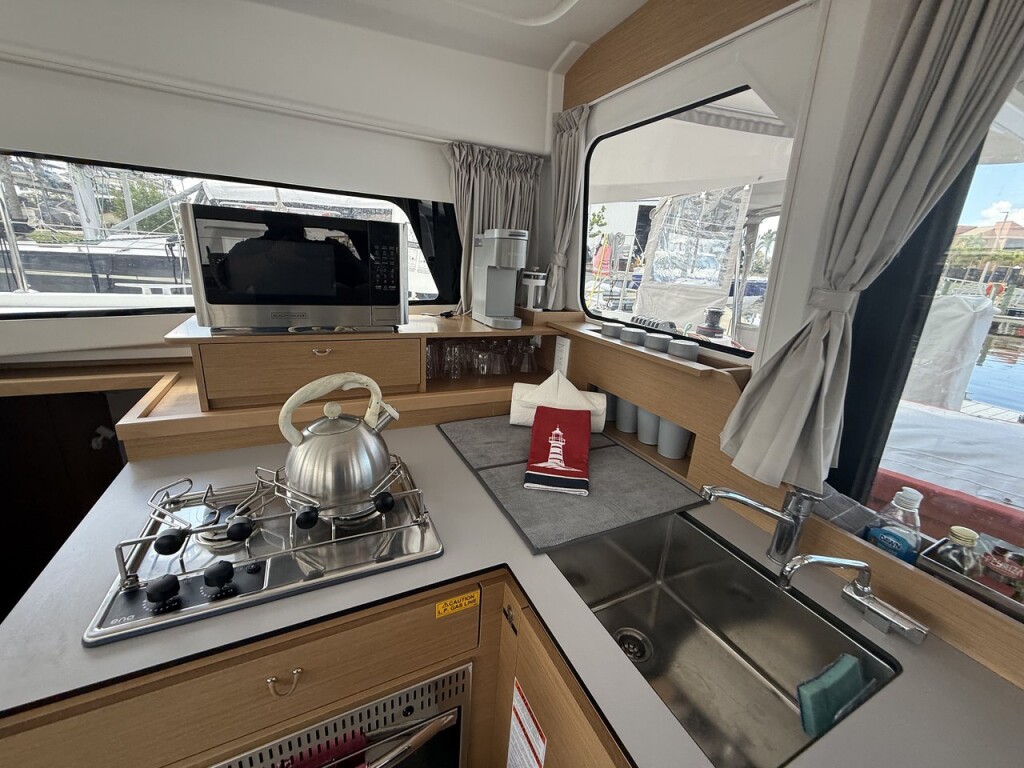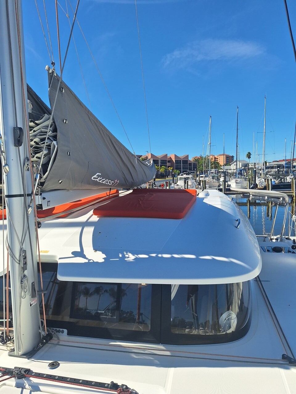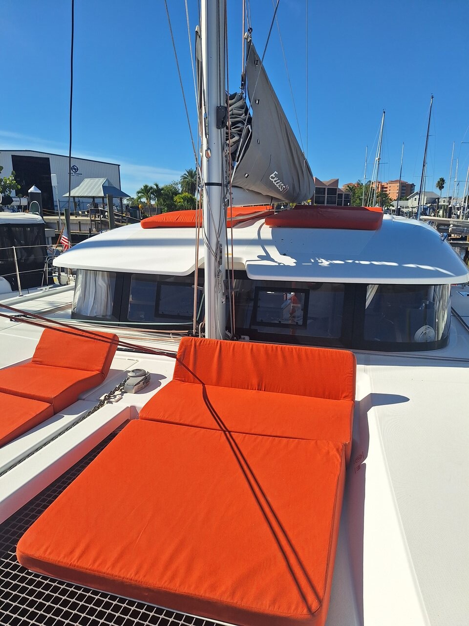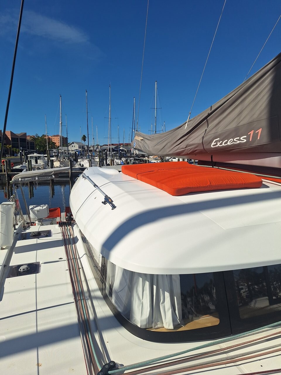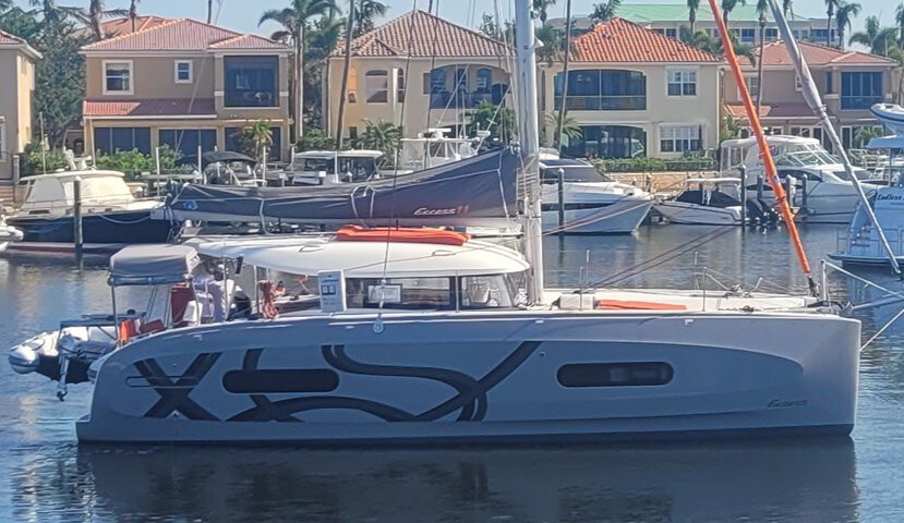 Catamaran Excess 11 Angion, built in 2023 is anchored in the Burnt Store Marina, Punta Gorda, USA - South Atlantic, USA. It has 2 + 1 cabins, can accommodate 4 + 1 people and has 2 toilets. Bed linen and kitchen equipment are included in the price.