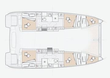 Catamaran Excess 11 Excess 11, built in 2025 is anchored in the Phuket, Ao Po Grand Marina, Thailand - Phuket, Thailand . It has 4 + 1 cabins, can accommodate 8 + 1 + 1 people and has 2 toilets. Bed linen and kitchen equipment are included in the price.