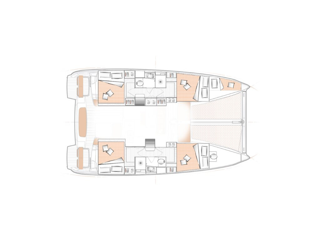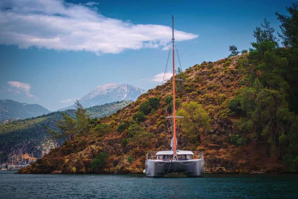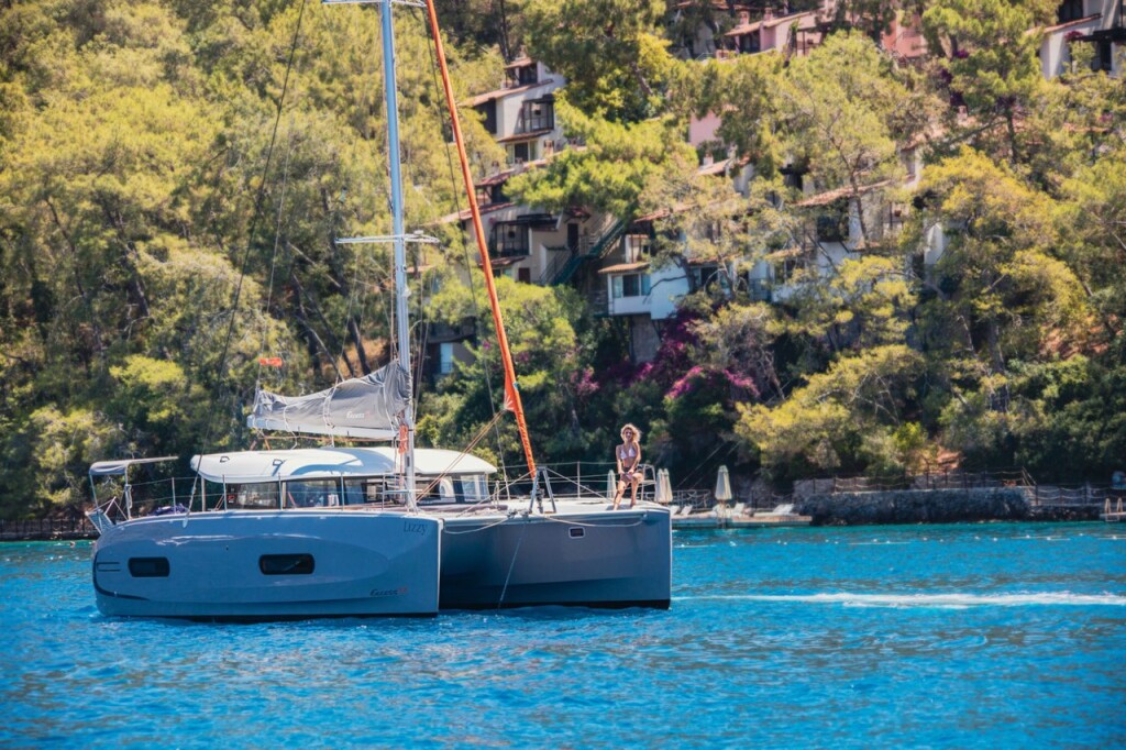 Catamaran Excess 11 Lizzy, built in 2021 is anchored in the Fethiye, Ece Saray Marina Resort, Turkey - Aegean, Turkey. It has 4 + 2 cabins, can accommodate 8 + 2 people and has 2 + 1 toilets. Bed linen and kitchen equipment are included in the price.