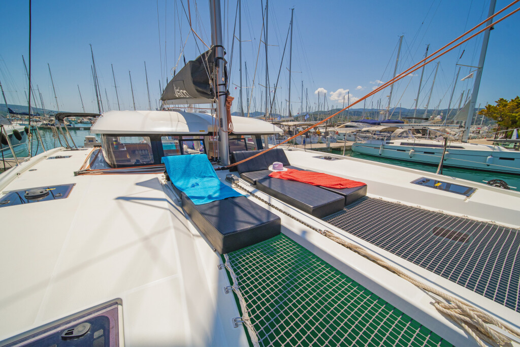 Catamaran Excess 11 Phos, built in 2021 is anchored in the Lefkas, D-Marin, Greece - Ionian Islands, Greece. It has 4 + 2 cabins, can accommodate 8 + 2 people and has 2 toilets. Bed linen and kitchen equipment are included in the price.