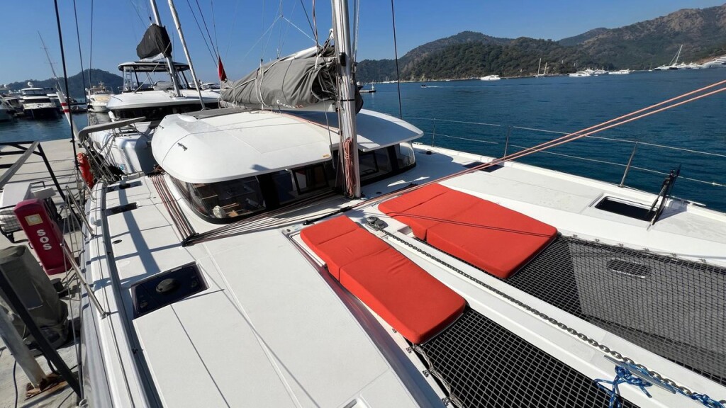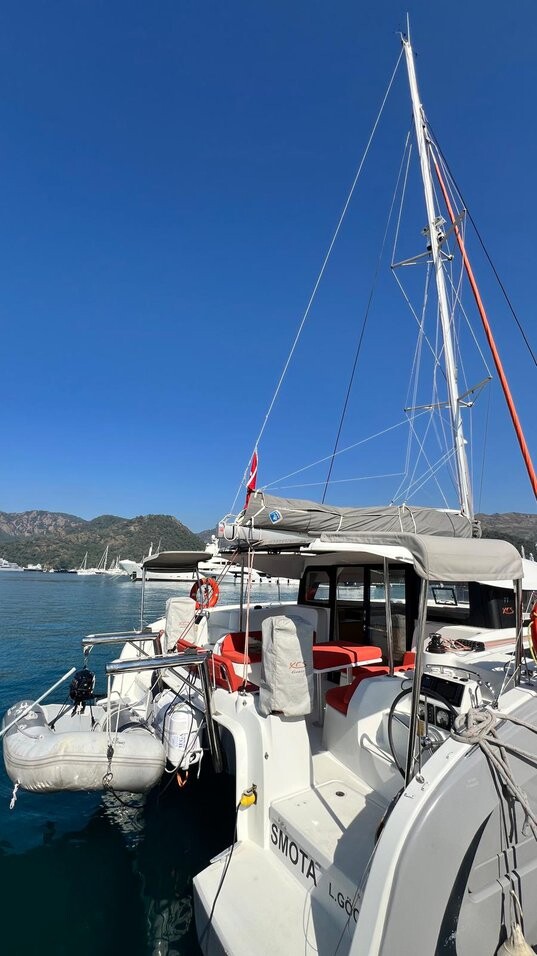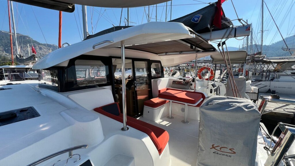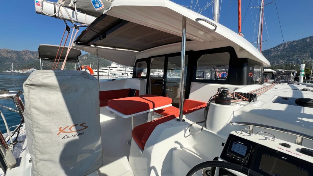 Catamaran Excess 11 Smota, built in 2022 is anchored in the Göcek, Turkey - Aegean, Turkey. It has 4 + 2 cabins, can accommodate 8 + 2 people and has 2 toilets. Bed linen and kitchen equipment are included in the price.