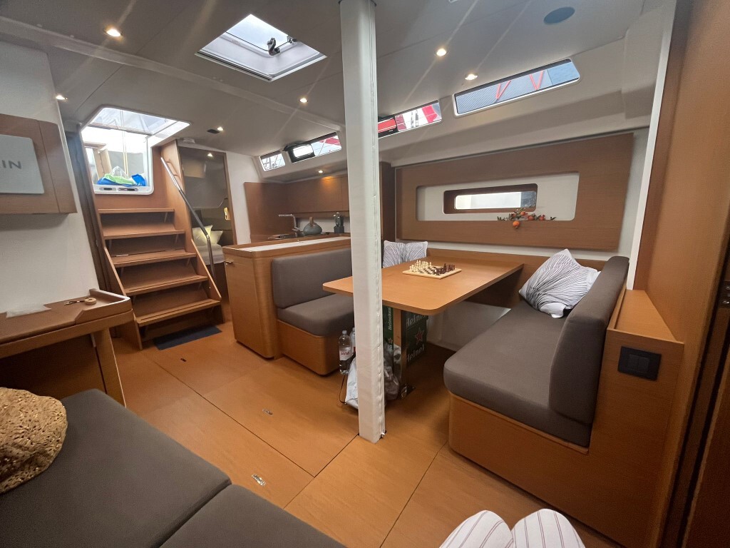 Sailing yacht First 44 Checkmate, built in 2023 is anchored in the ACI Marina Split, Croatia - Split, Croatia. It has 3 cabins, can accommodate 6 + 1 people and has 2 toilets. Bed linen and kitchen equipment are included in the price.