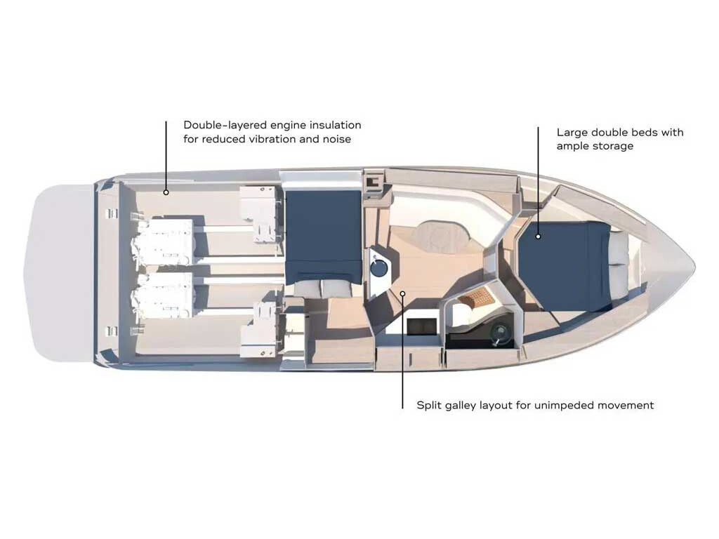 Motor yacht Focus Power 36 Hard Top Focus 36, built in 2023 is anchored in the ACI Marina Trogir, Croatia - Split, Croatia. It has 2 cabins, can accommodate 4 + 2 people and has 1 toilets. Bed linen and kitchen equipment are included in the price.