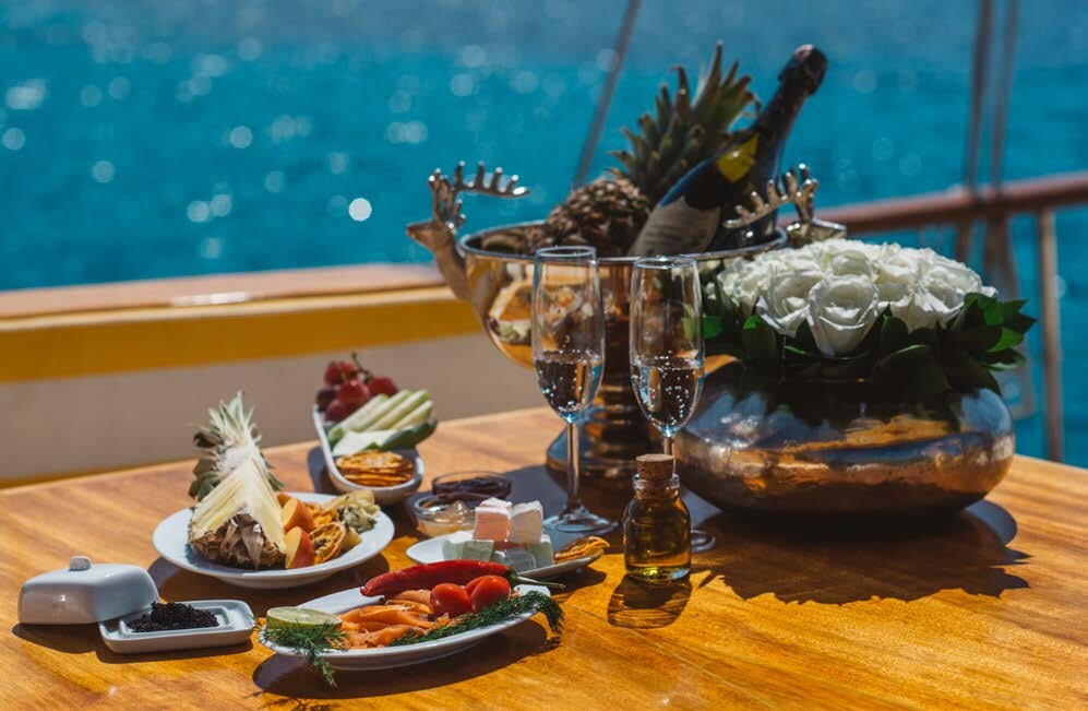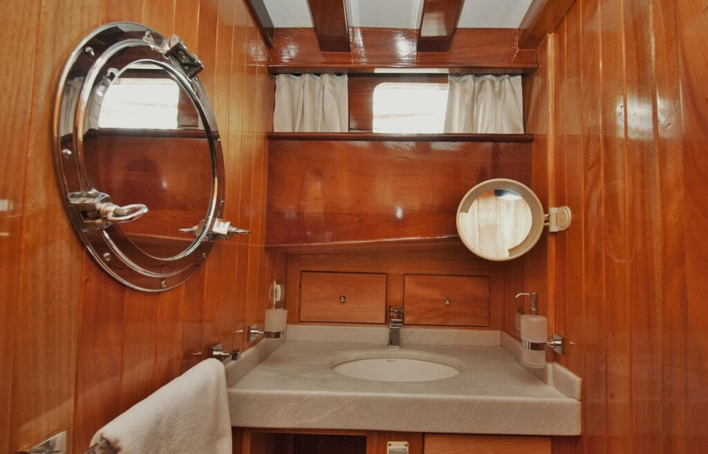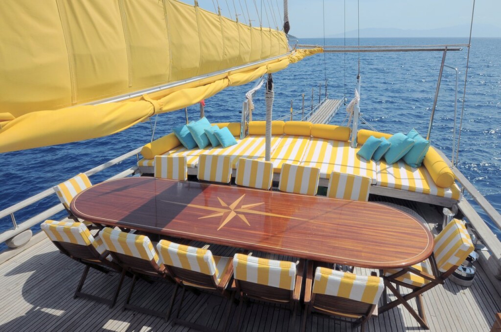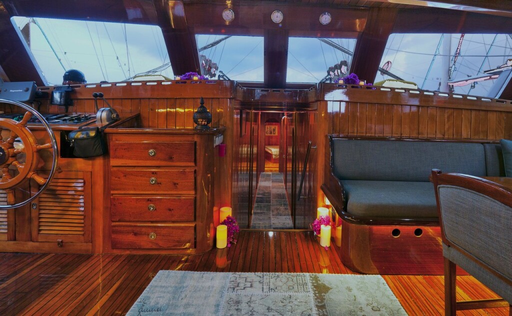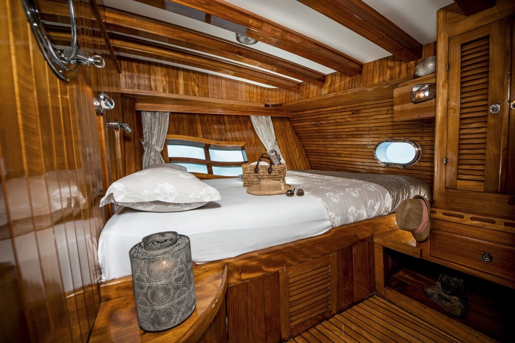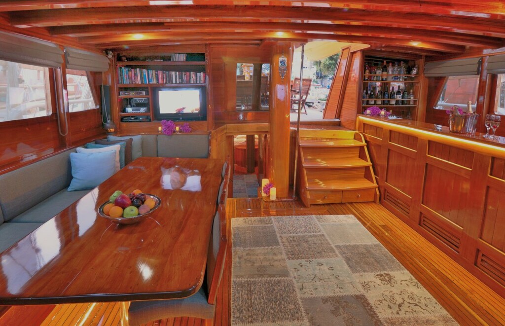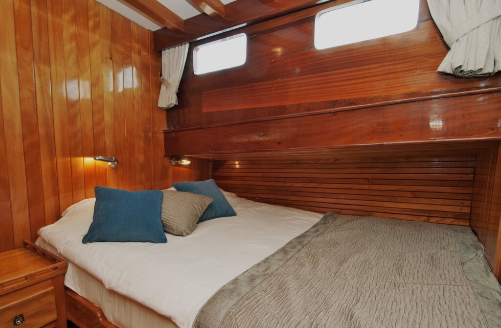 Gulet Fortuna* Fortuna, built in 1996 is anchored in the Bodrum Harbour, Turkey - Aegean, Turkey. It has 7 cabins, can accommodate 14 people and has 7 toilets. Bed linen and kitchen equipment are included in the price.