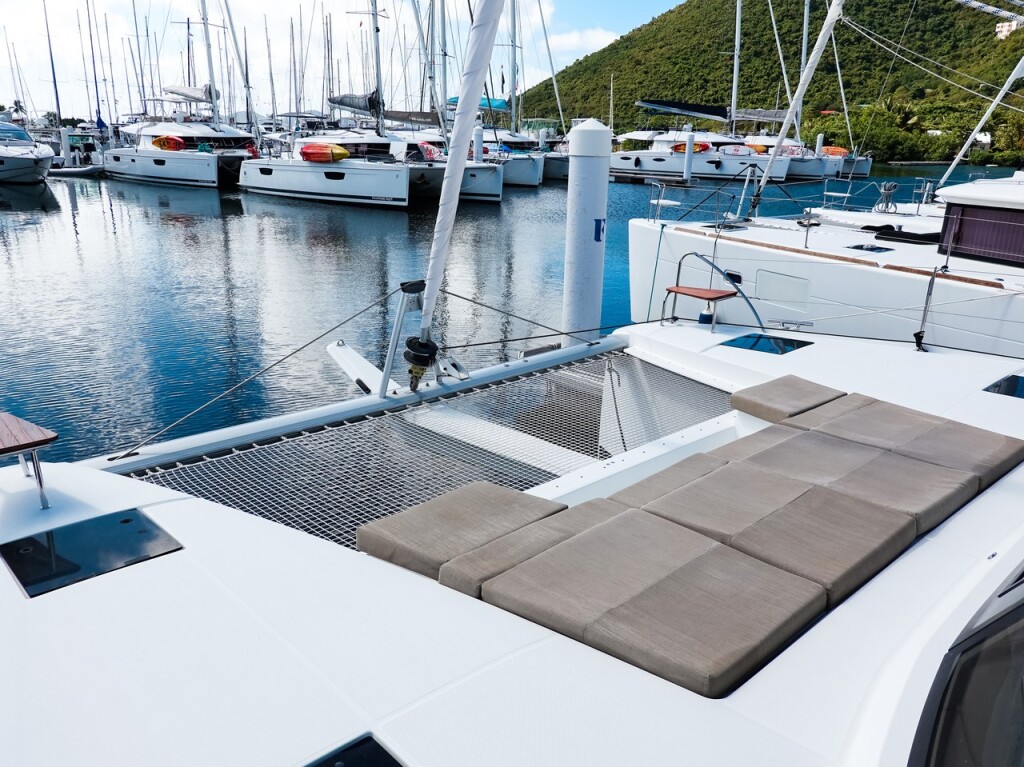 Catamaran Fountaine Pajot Astrea 42 Brown Eyed Girl, built in 2019 is anchored in the BVI, Tortola, Nanny Cay Marina, British Virgin Islands - British-Virgin Islands, British Virgin Islands. It has 3 cabins, can accommodate 6 + 2 people and has 3 toilets. Bed linen and kitchen equipment are included in the price.