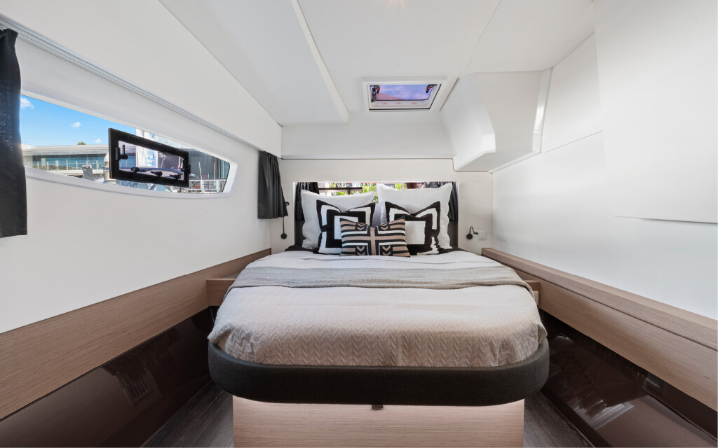 Catamaran Fountaine Pajot Astrea 42 Rossa, built in 2025 is anchored in the Palermo, Marina di La Cala, Italy - Sicily, Italy. It has 4 + 1 cabins, can accommodate 8 people and has 4 toilets. Bed linen and kitchen equipment are included in the price.