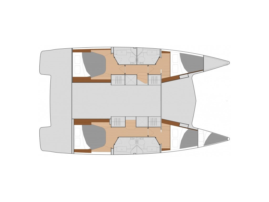 Catamaran Fountaine Pajot Isla 40 Blue Orion, built in 2022 is anchored in the Fethiye, Yacht Classic Hotel Marina, Turkey - Aegean, Turkey. It has 4 + 1 cabins, can accommodate 8 + 1 people and has 4 toilets. Bed linen and kitchen equipment are included in the price.