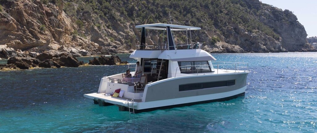 Power catamaran Fountaine Pajot MY 37 PLUTON_DB, built in 2018 is anchored in the Whitsundays, Airlie Beach, Coral Sea Marina, Australia - Whitsunday of Qeaunday, Australia and Oceania. It has 3 cabins, can accommodate 6 people and has 2 toilets. Bed linen and kitchen equipment are included in the price.