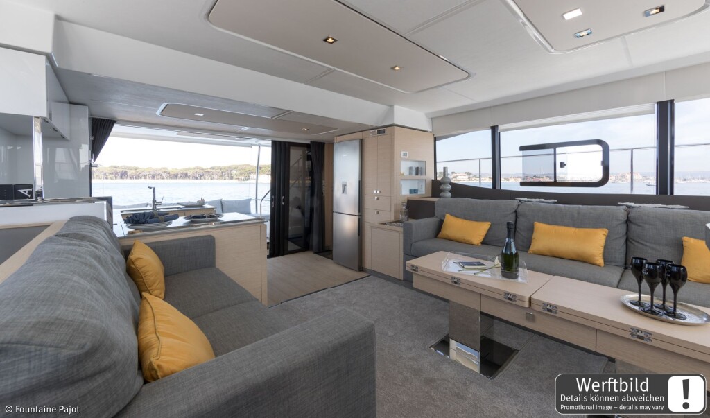 The Fountaine Pajot MY6 is particularly popular due to its special equipment such as Teak cockpit, Bathing platform, Air Conditioning, Dishwasher, Generator, Autopilot, Microwave, Solar panels, Cockpit cushions. If you have any questions, our team will be happy to answer them personally!