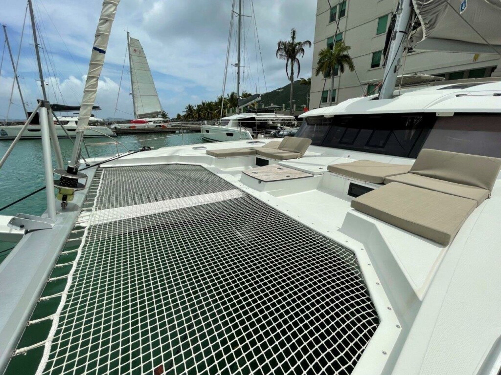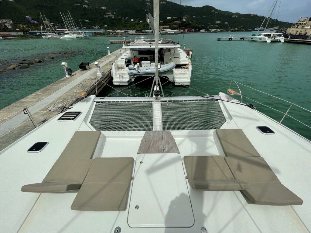 Catamaran Fountaine Pajot Saba 50 Singing Winds, built in 2019 is anchored in the BVI, Tortola, Ritter House Marina, British Virgin Islands - British-Virgin Islands, British Virgin Islands. It has 5 cabins, can accommodate 9 + 2 people and has 5 toilets. Bed linen and kitchen equipment are included in the price.