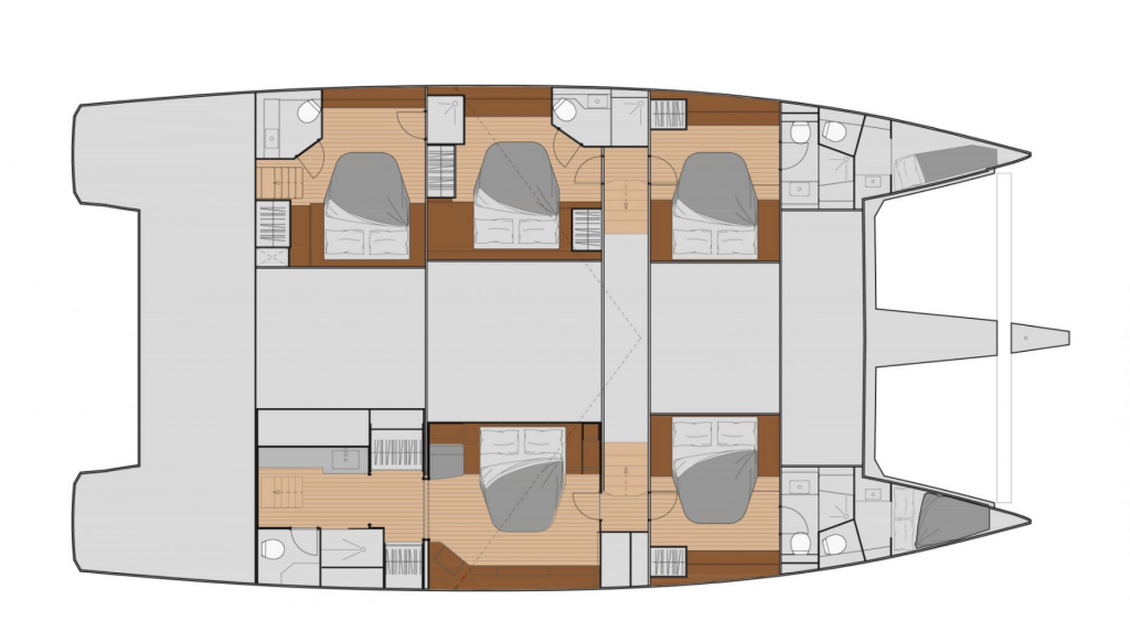 Catamaran Fountaine Pajot Samana 59 Alma, built in 2022 is anchored in the Athens, Alimos marina, Greece - Peloponnese, Greece. It has 5 + 2 cabins, can accommodate 10 + 3 people and has 5 toilets. Bed linen and kitchen equipment are included in the price.